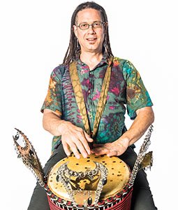 His specialties are the djembe and dunun, but he plays a wide assortment of other drums including bugaraboo, congas, frame drum, bongos, and doumbek.