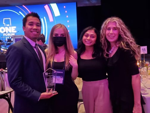 Students Ami Nakrani and Rebecca Jones, along with alumnus Mark Comia, traveled to Minneapolis to accept the award. They addressed an audience of physicians, nurses and other medical staff affiliated with stem cell transplant centers, as well as other Be the Match supporters.