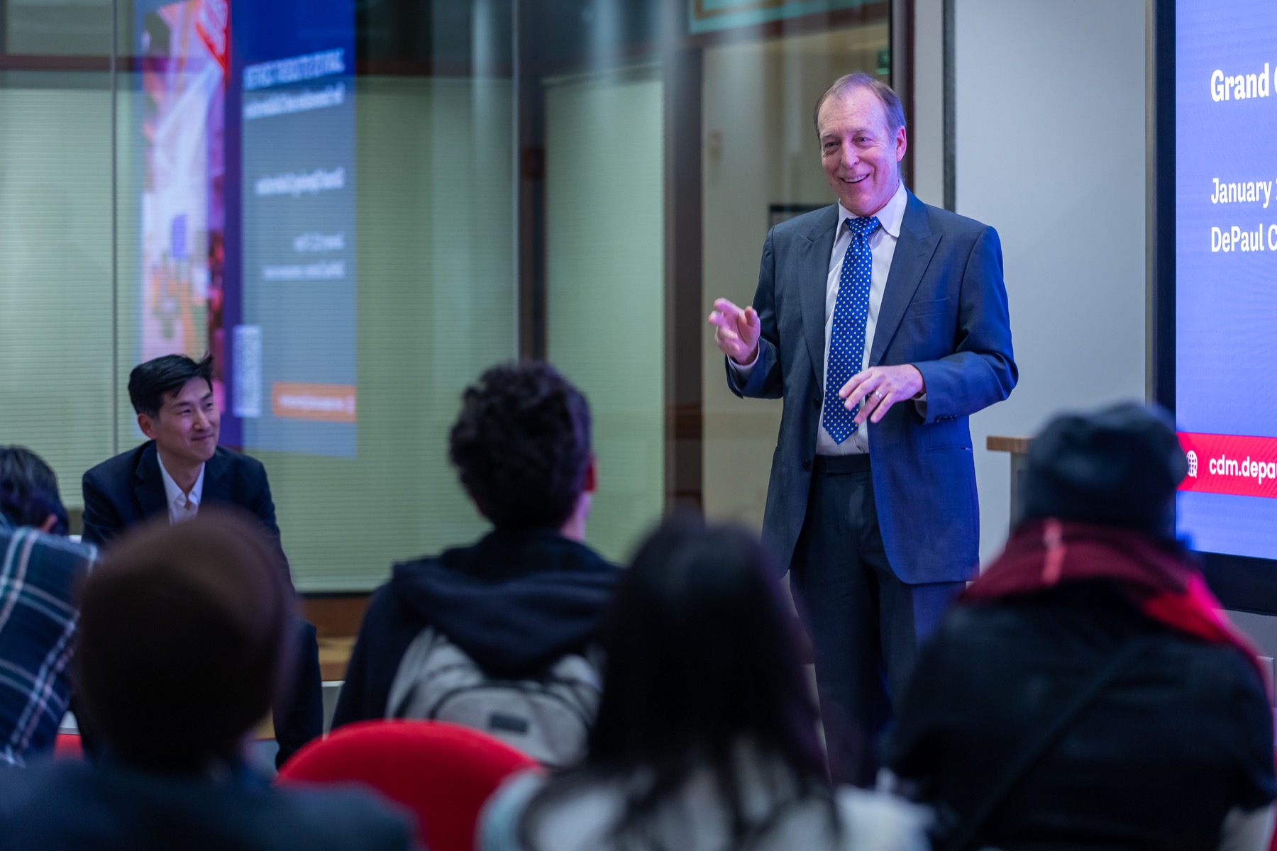 Shermann “Dilla” Thomas visits DePaul, November 2022.