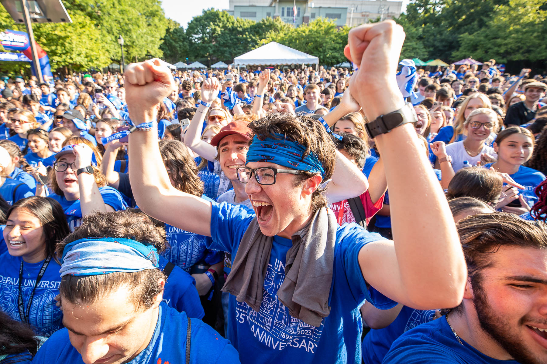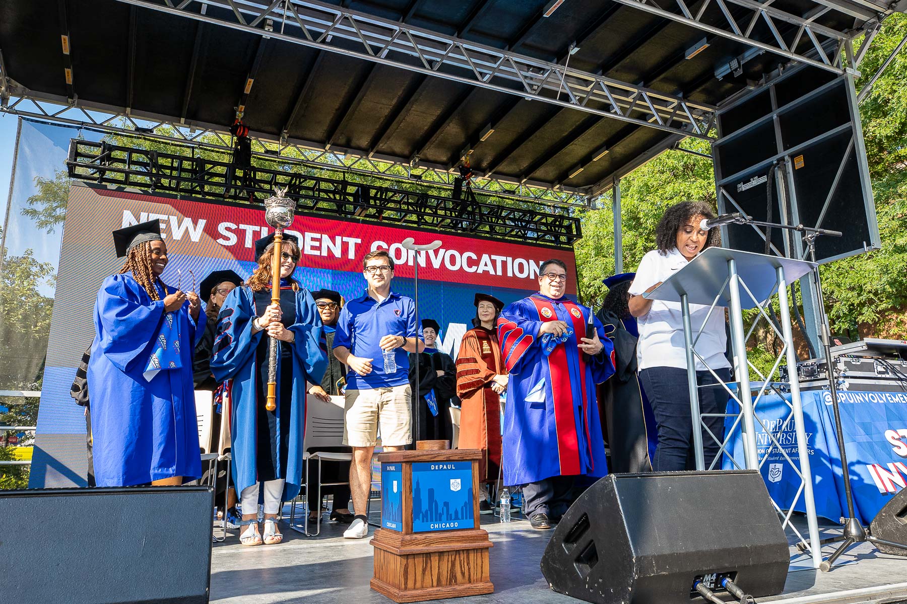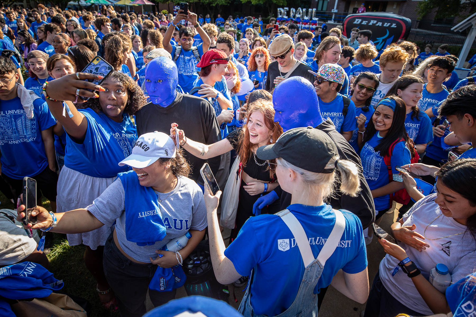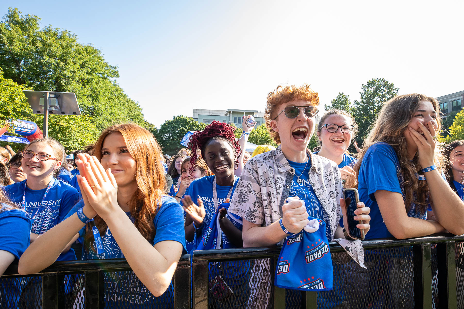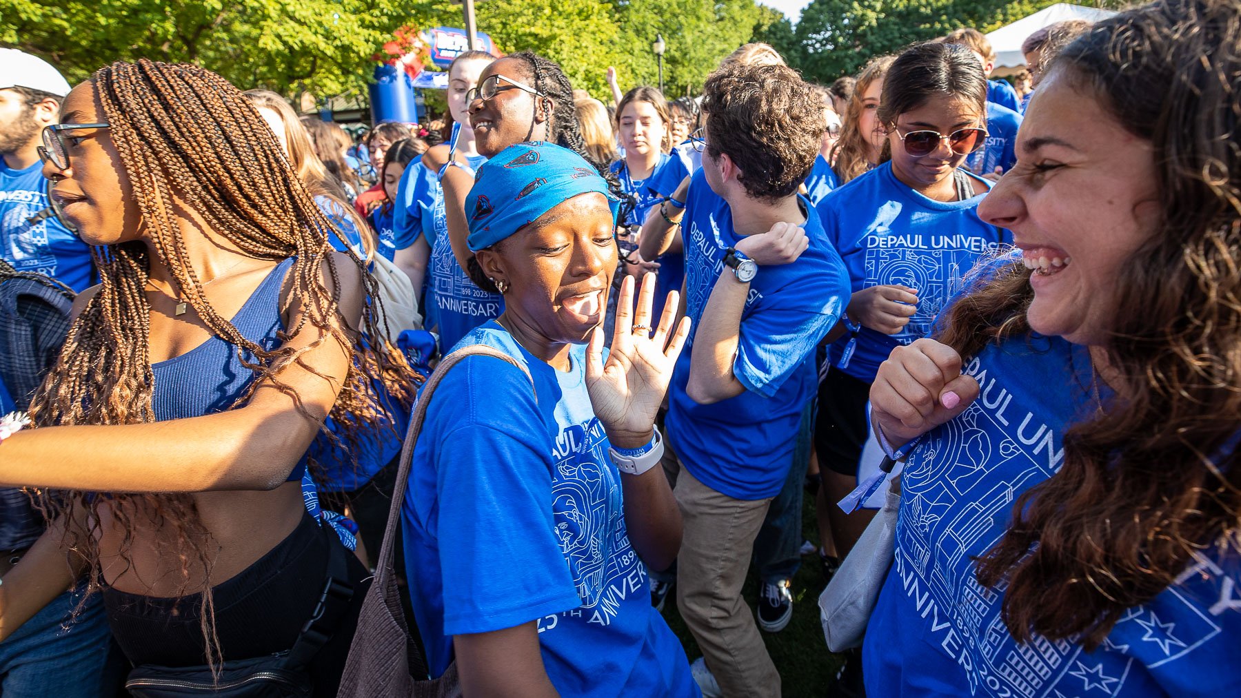 On Sept. 6, DePaul's new students were welcomed by faculty, staff and current students during this year's Blue Demon Welcome on the Lincoln Park Campus Quad. New students gathered in McGrath-Phillips Arena and processed in the New Student Cavalcade to the Quad where they were greeted by the campus community and other special guests.