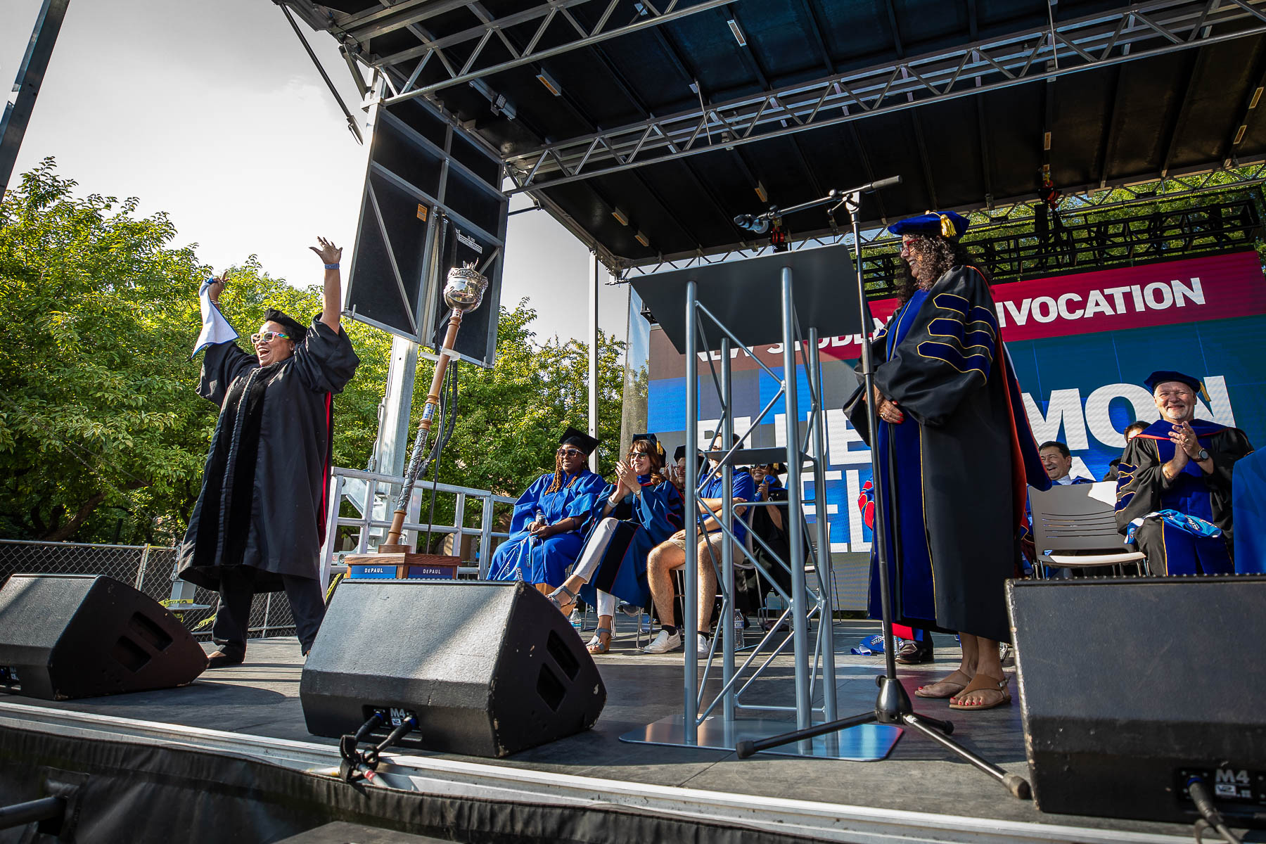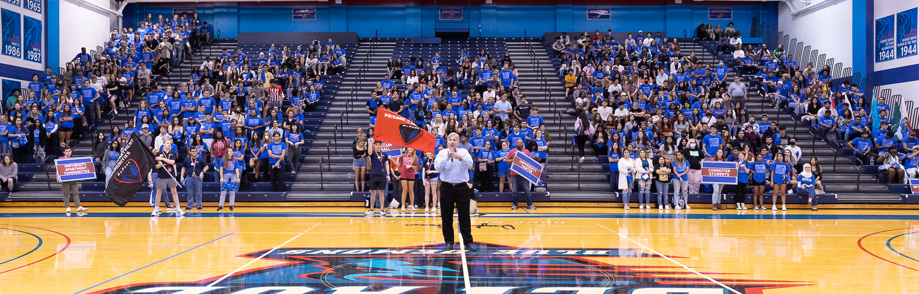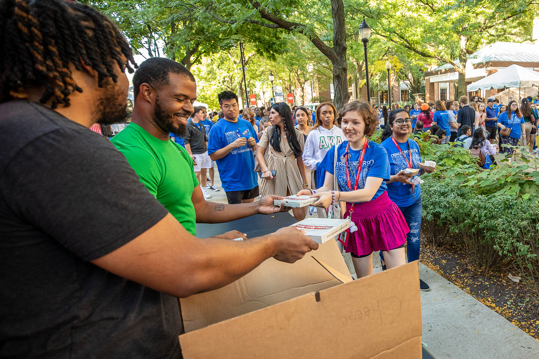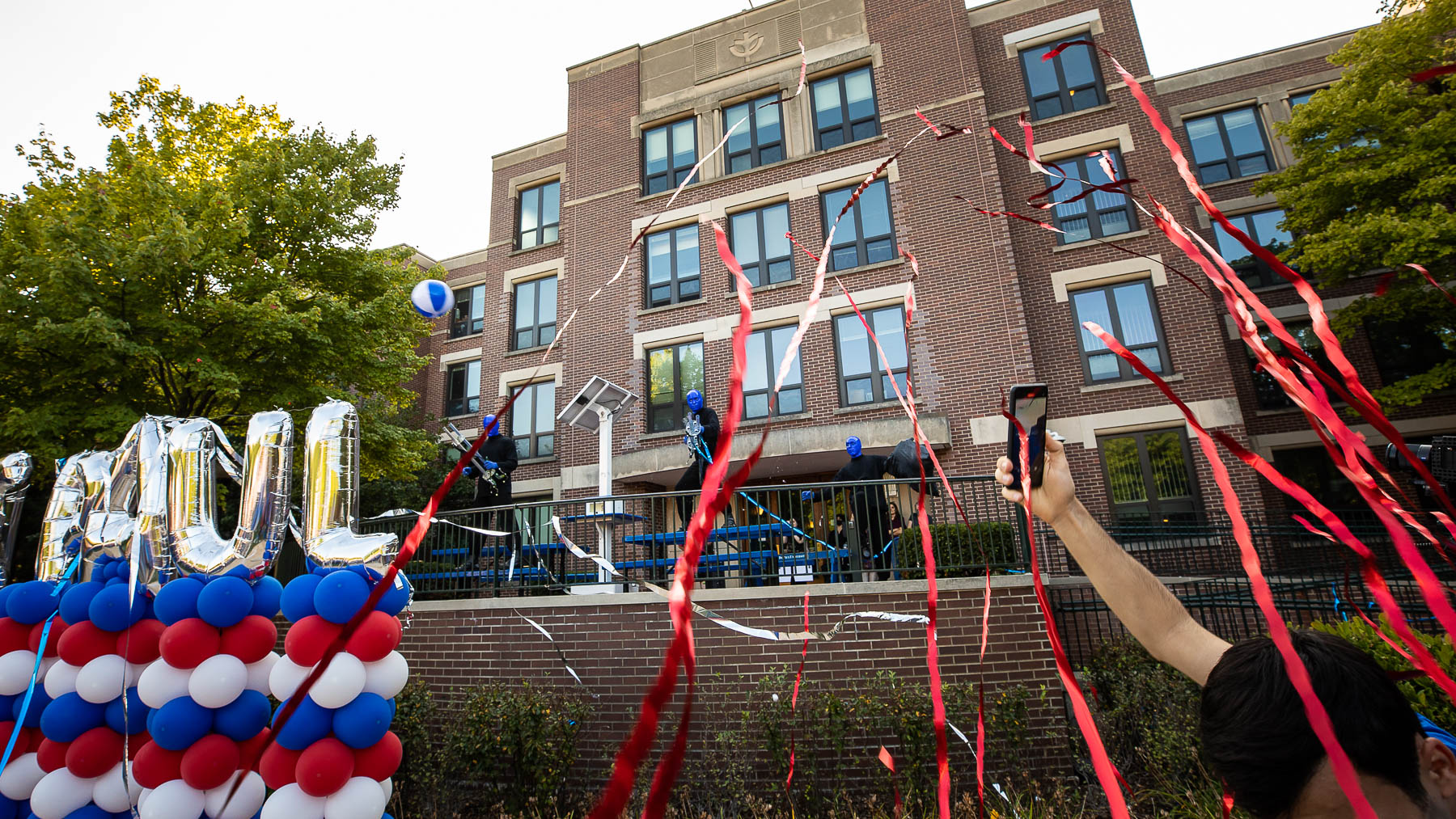 On Sept. 6, DePaul's new students were welcomed by faculty, staff and current students during this year's Blue Demon Welcome on the Lincoln Park Campus Quad. New students gathered in McGrath-Phillips Arena and processed in the New Student Cavalcade to the Quad where they were greeted by the campus community and other special guests.