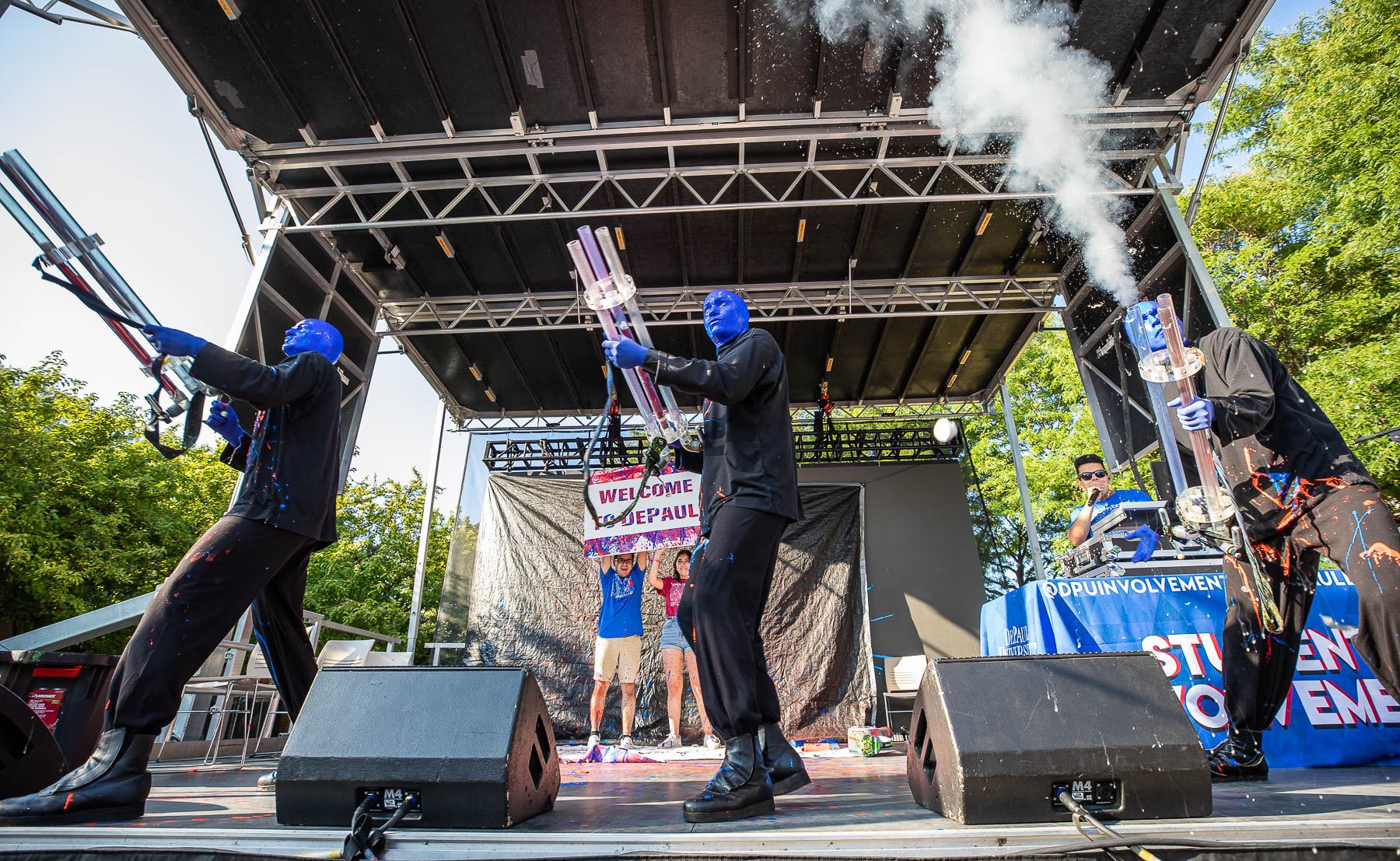 After brief introductions and remarks from President Rob Manuel and others, the students enjoyed a surprise performance from the Blue Man Group.