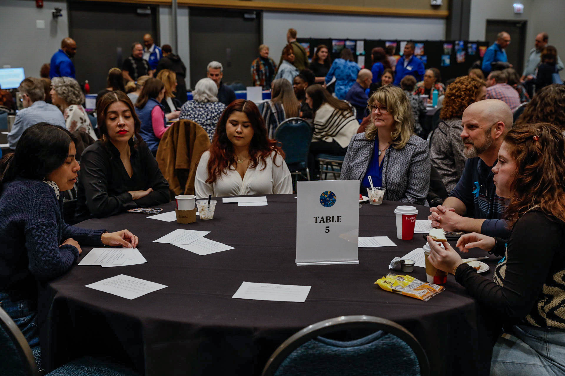Darrick Tovar-Murray, associate dean and professor in the College of Education, discussed the concept of the Tree of Life, a healing practice that he uses in work with students and survivors of gun violence. From the roots of our ancestors to a forest of community, he guided the group through the metaphor of trees as strengthening forces for understanding ourselves and each other.
