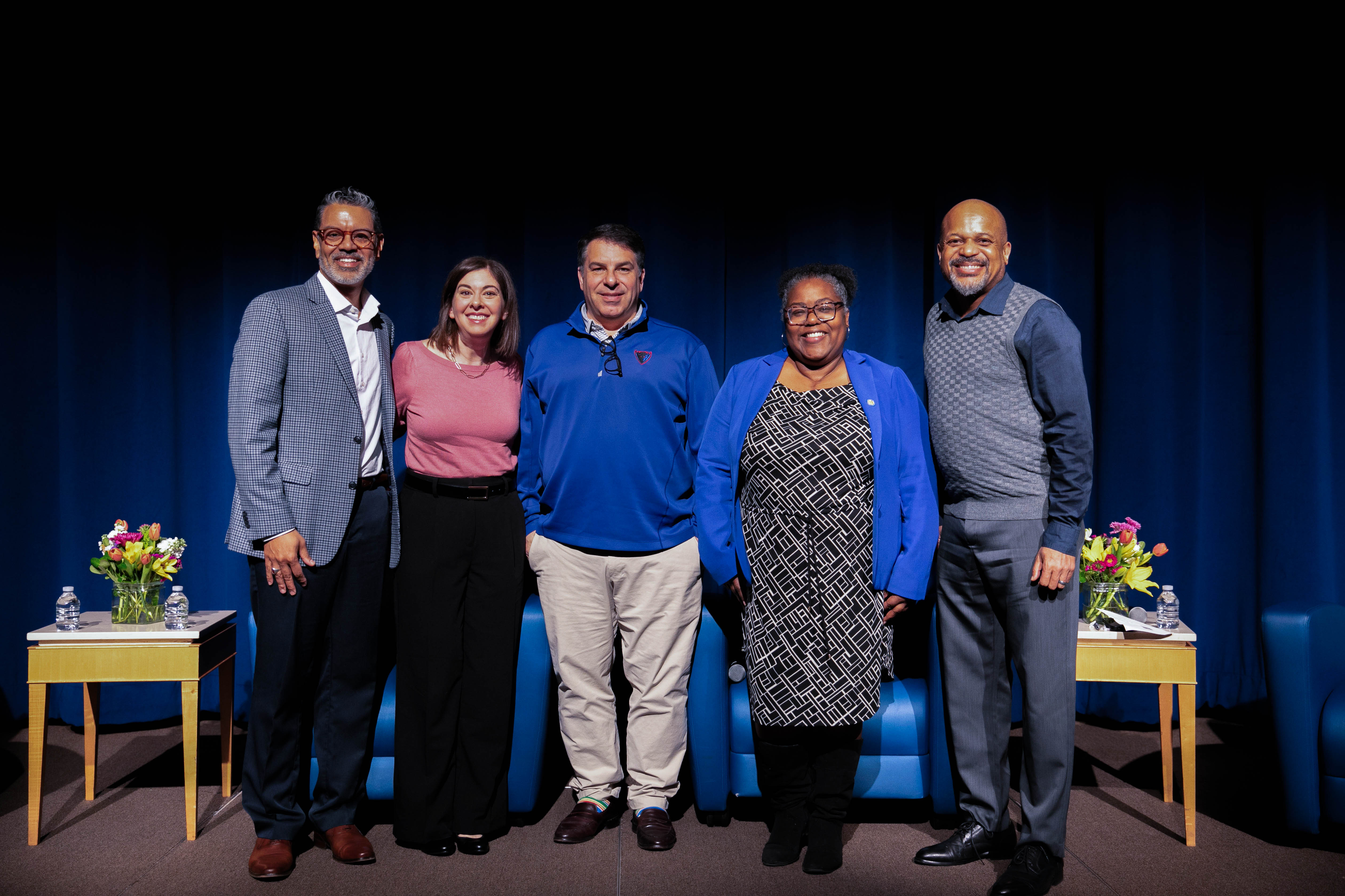 Orson Morrison, associate director for clinical services at University Counseling and Psychological Services, moderated the opening conversation. He invited panelists to reflect on “what community, care and belonging mean to us, and how to leverage values and principles such as our potential leadership to really create a culture that will sustain us during these times and also to help us to thrive,” Morrison said.