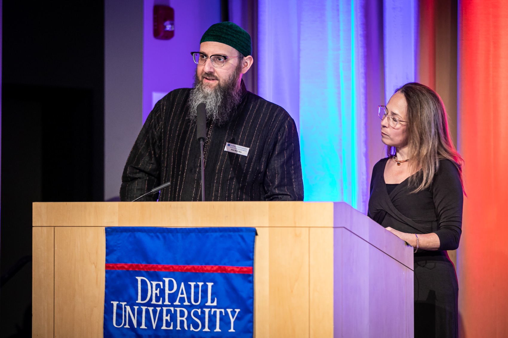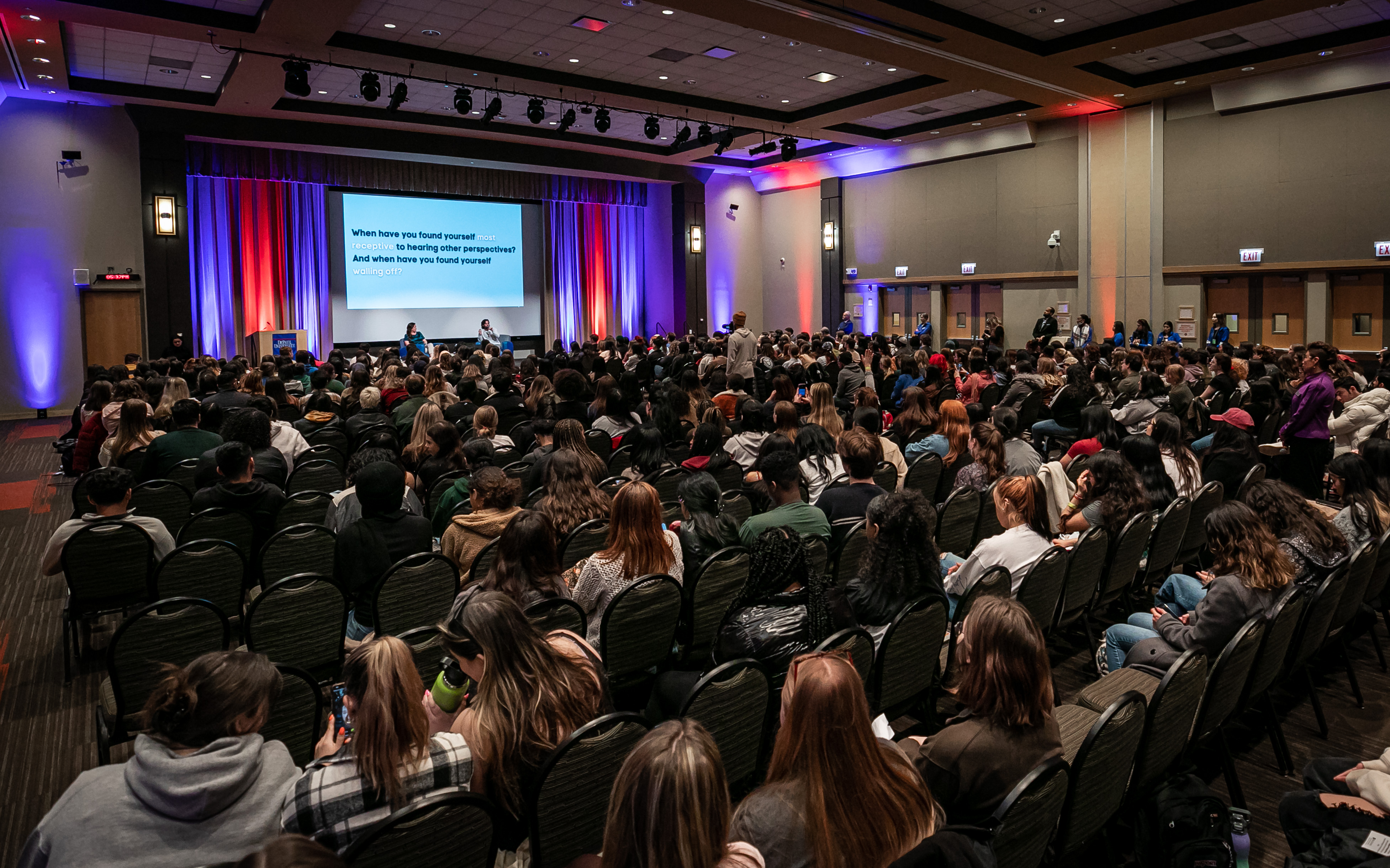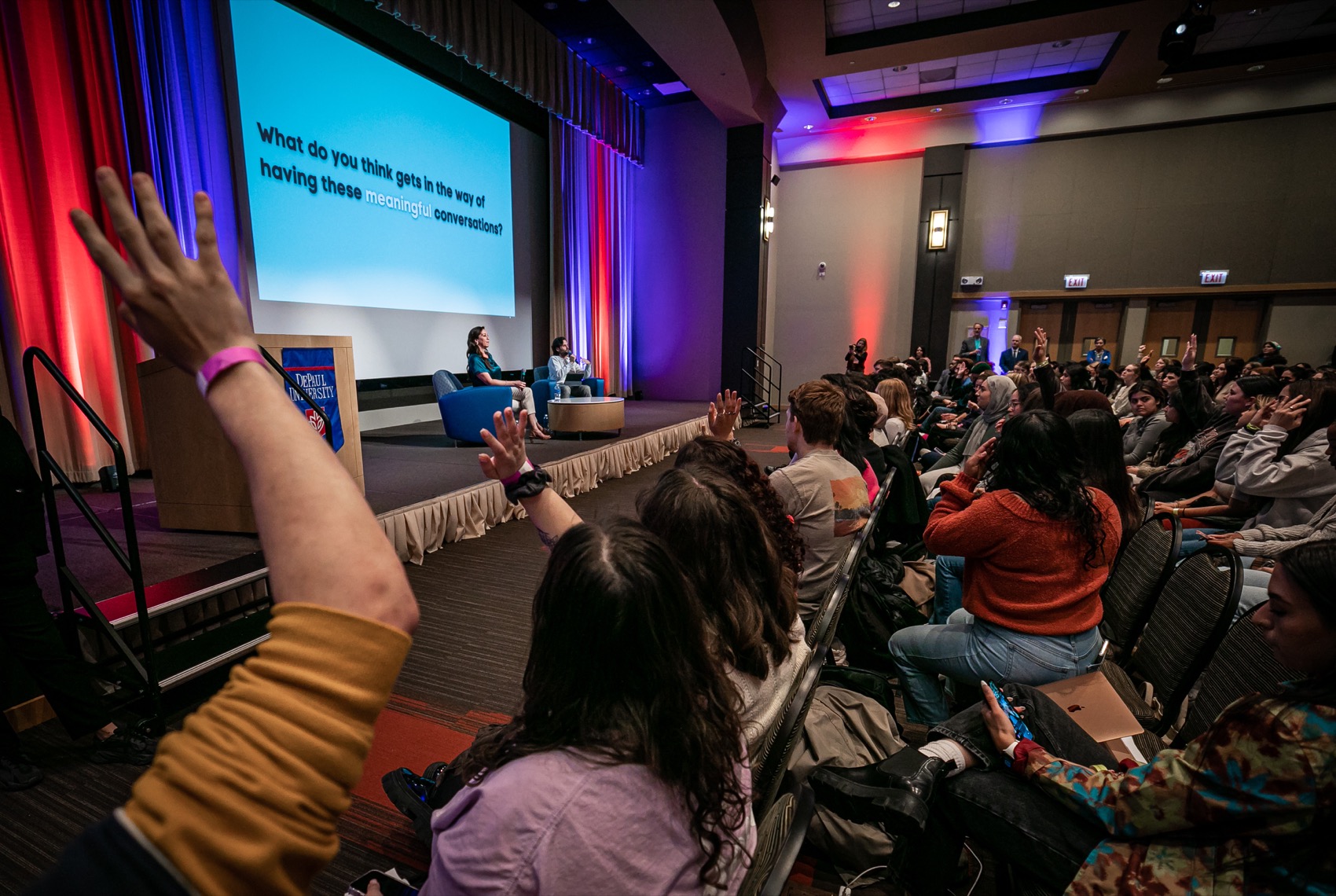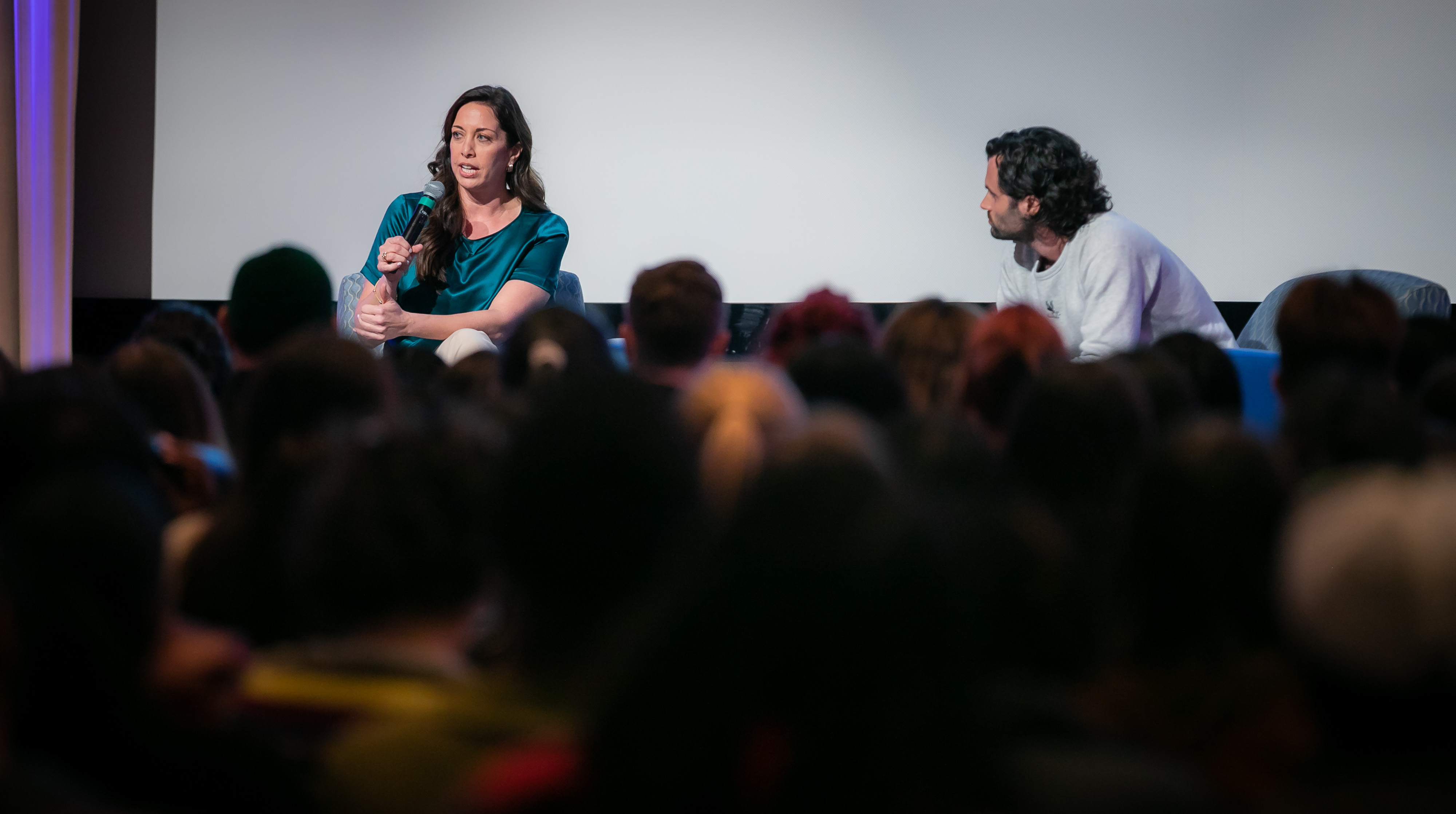 DePaul was star-struck when actor Penn Badgley, star of "Gossip Girl" and Netflix's "You," visited campus along with Nura Mowzoon, an instructor at Arizona State University, to present their discourse series "Can We Talk?," on March 28. The event at the Lincoln Park Student Center engaged students in a constructive dialogue that explored how to shift our style of discourse from one of contention to one of cohesion and collaboration.
