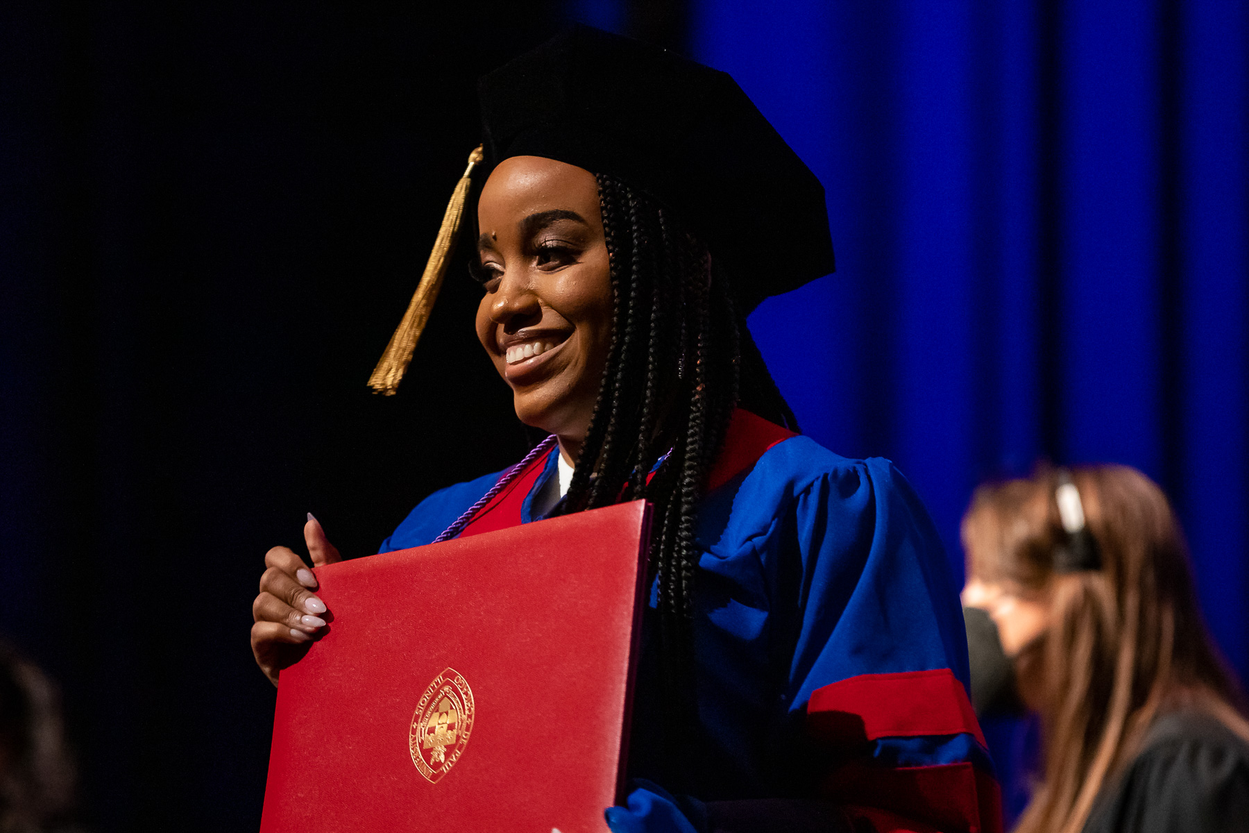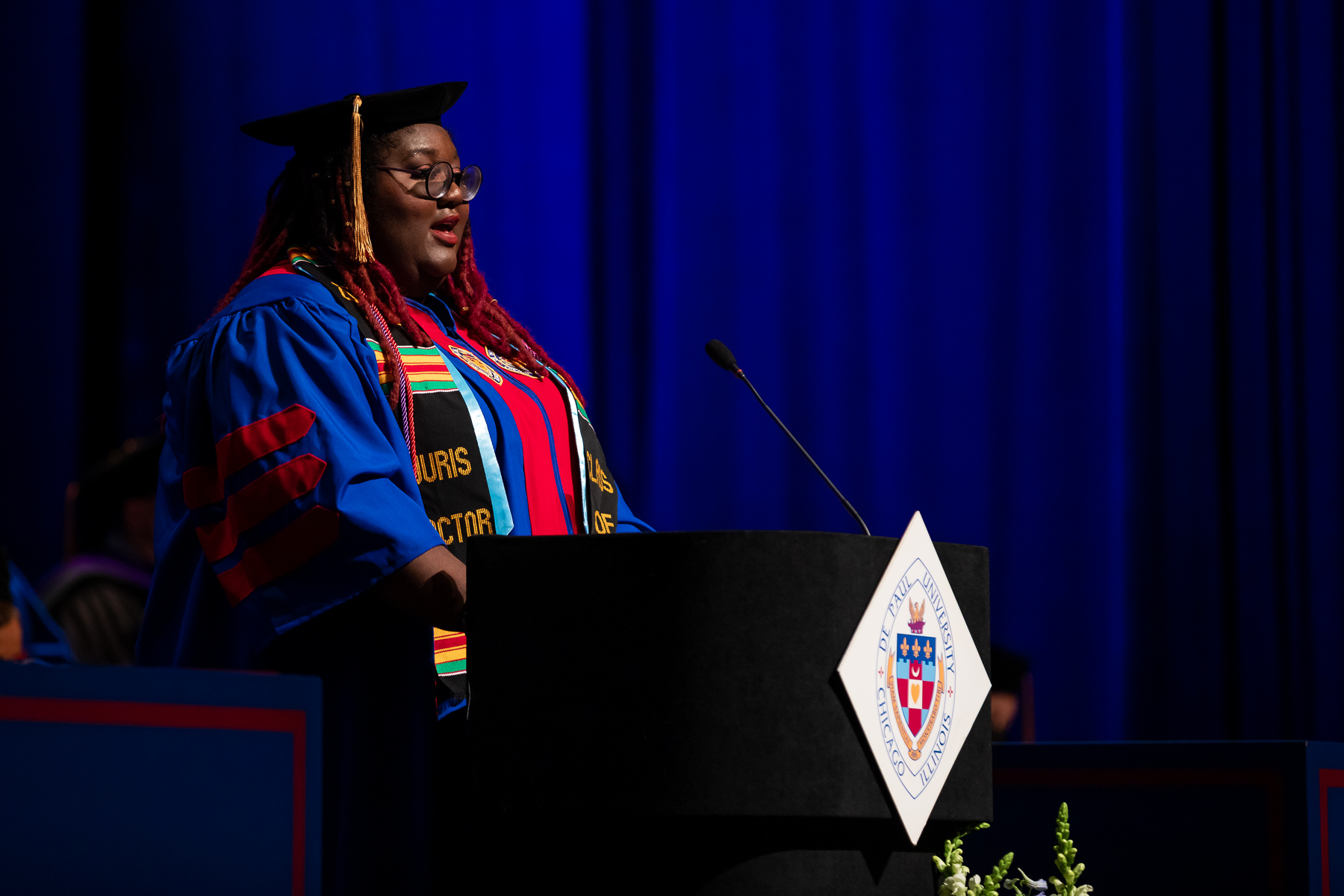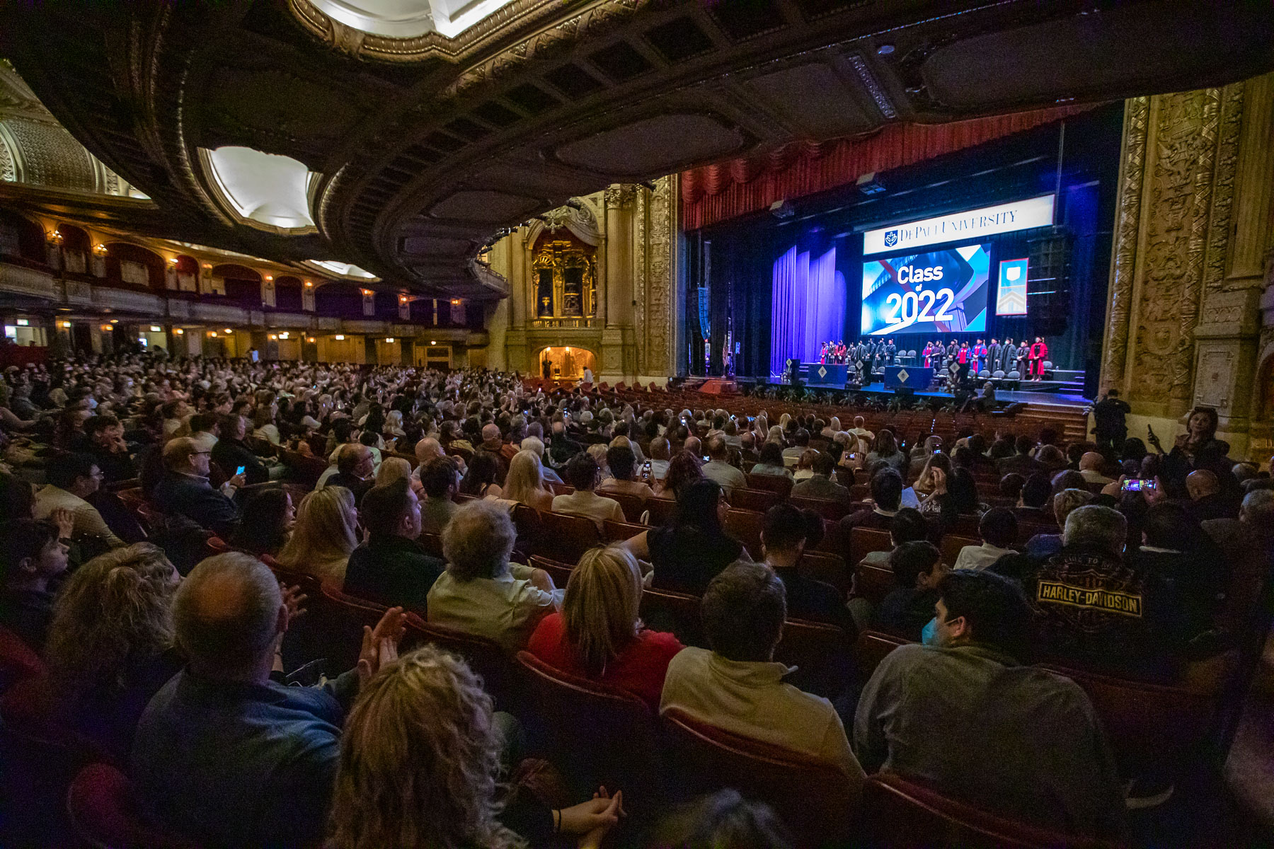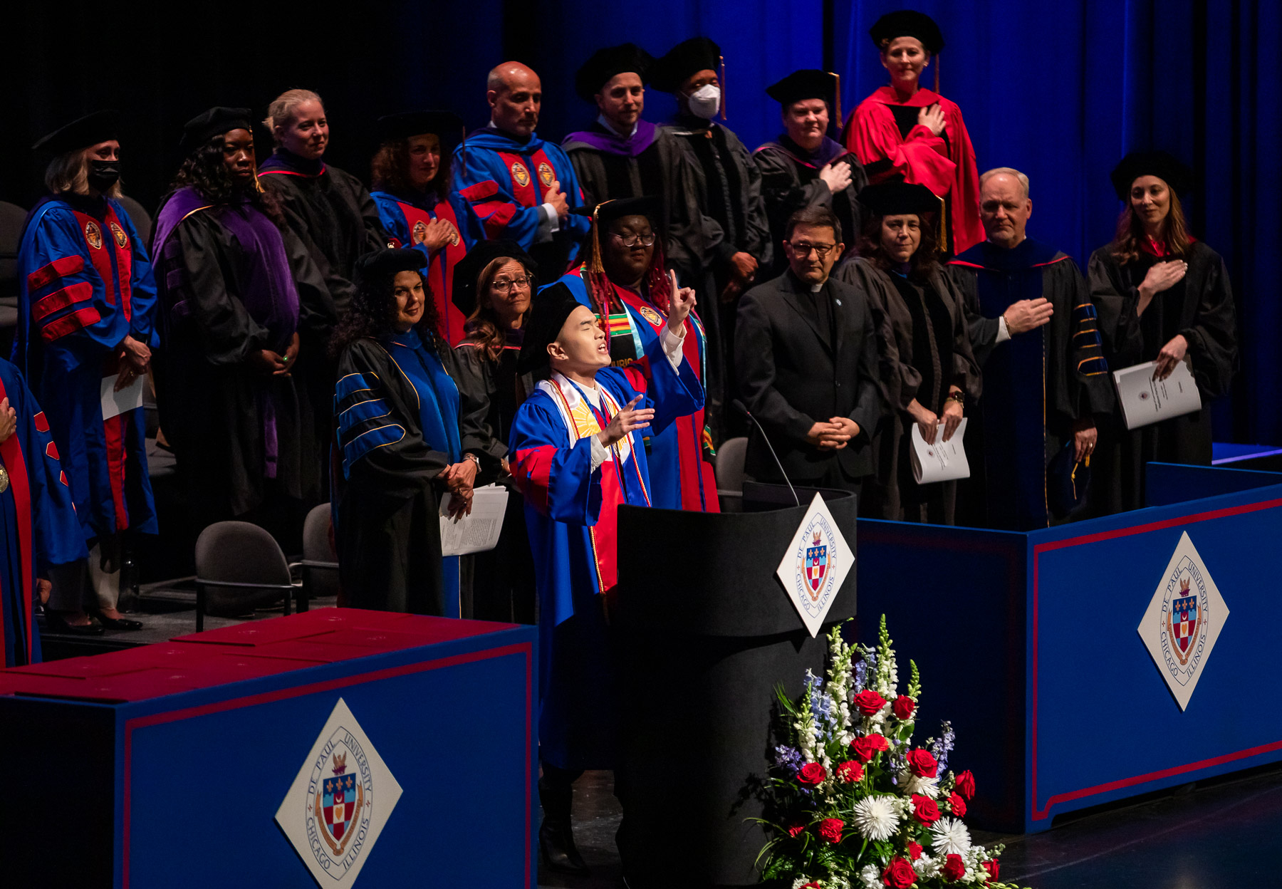 The DePaul University College of Law's Class of 2022 received their degrees at an in-person ceremony May 21 at the Chicago Theatre, the first such commencement in more than 2½ years. Natalye Paquin, president and chief executive officer of Points of Light, addressed the graduates. The College of Law's ceremony marks the kickoff to DePaul's commencement season that culminates the weekend of June 11-12 at Wintrust Arena.