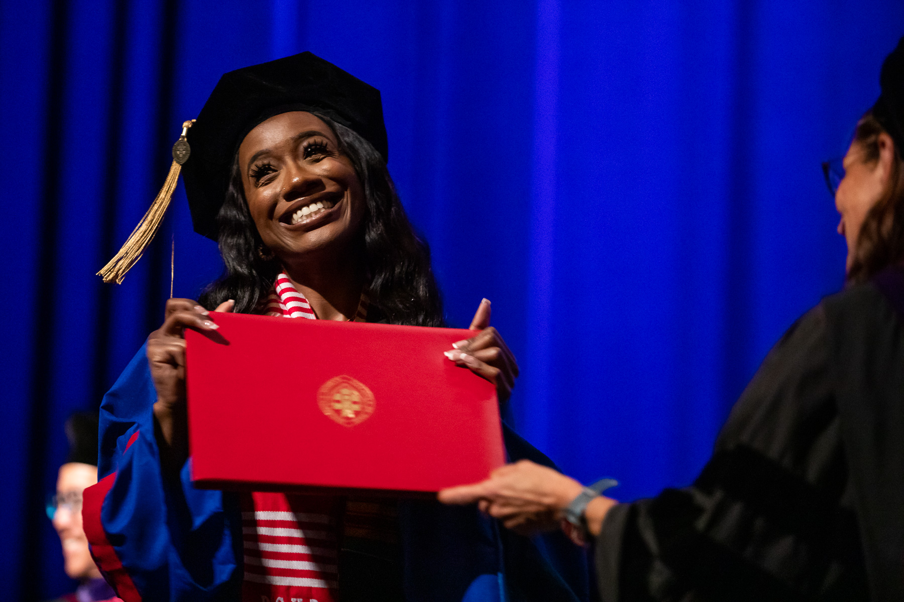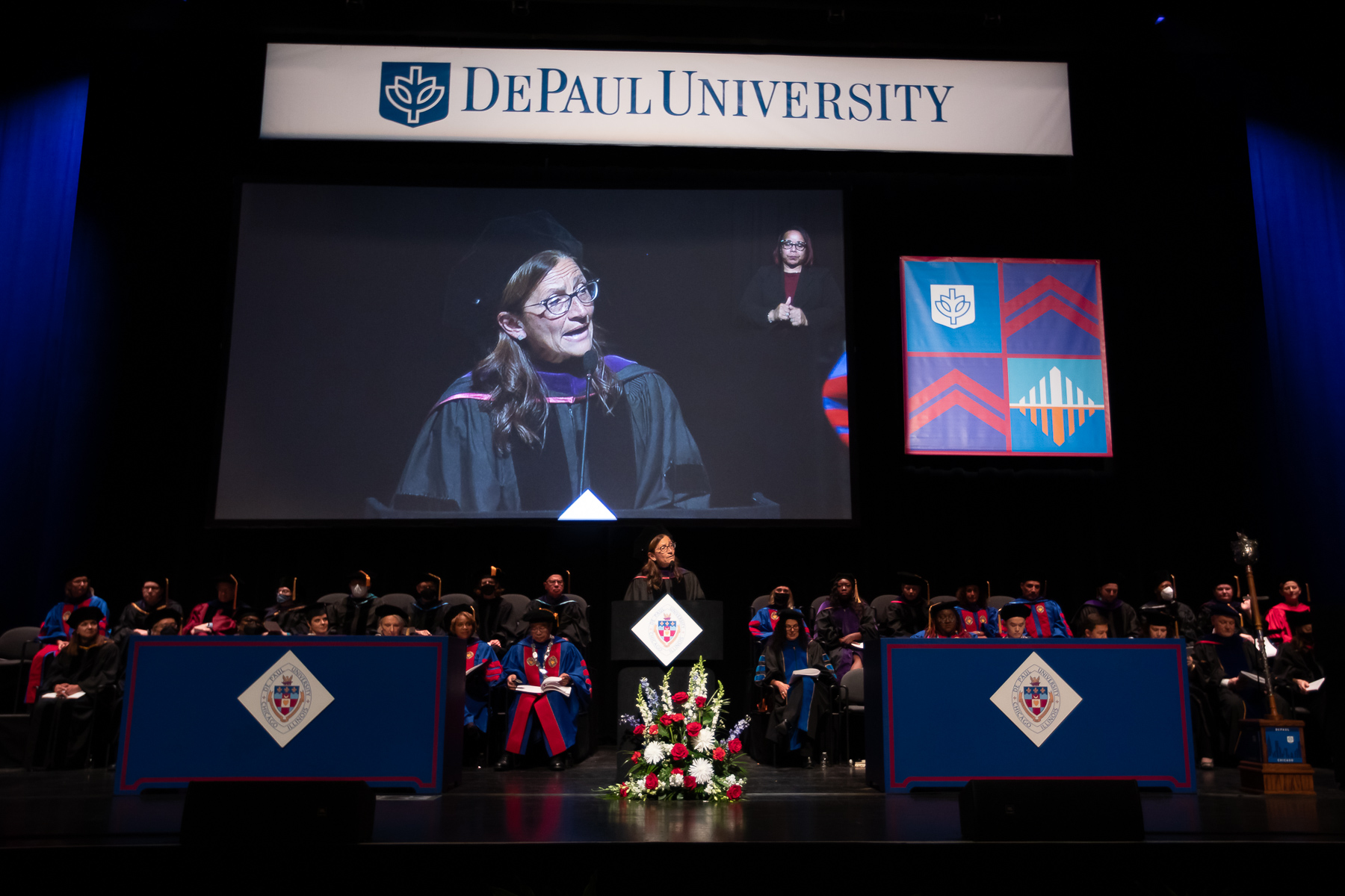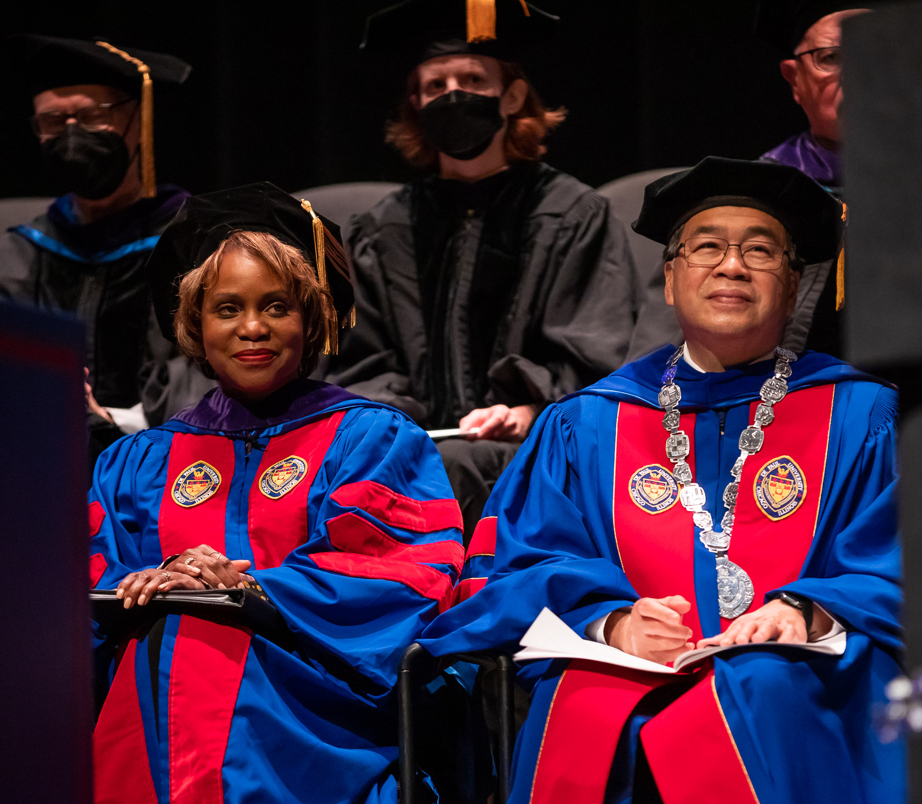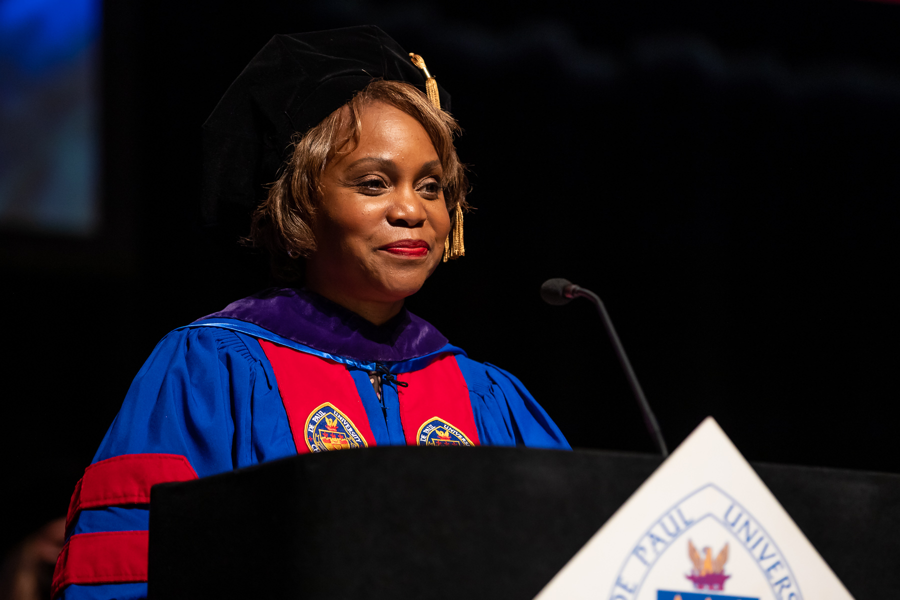 The DePaul University College of Law's Class of 2022 received their degrees at an in-person ceremony May 21 at the Chicago Theatre, the first such commencement in more than 2½ years. Natalye Paquin, president and chief executive officer of Points of Light, addressed the graduates. The College of Law's ceremony marks the kickoff to DePaul's commencement season that culminates the weekend of June 11-12 at Wintrust Arena.