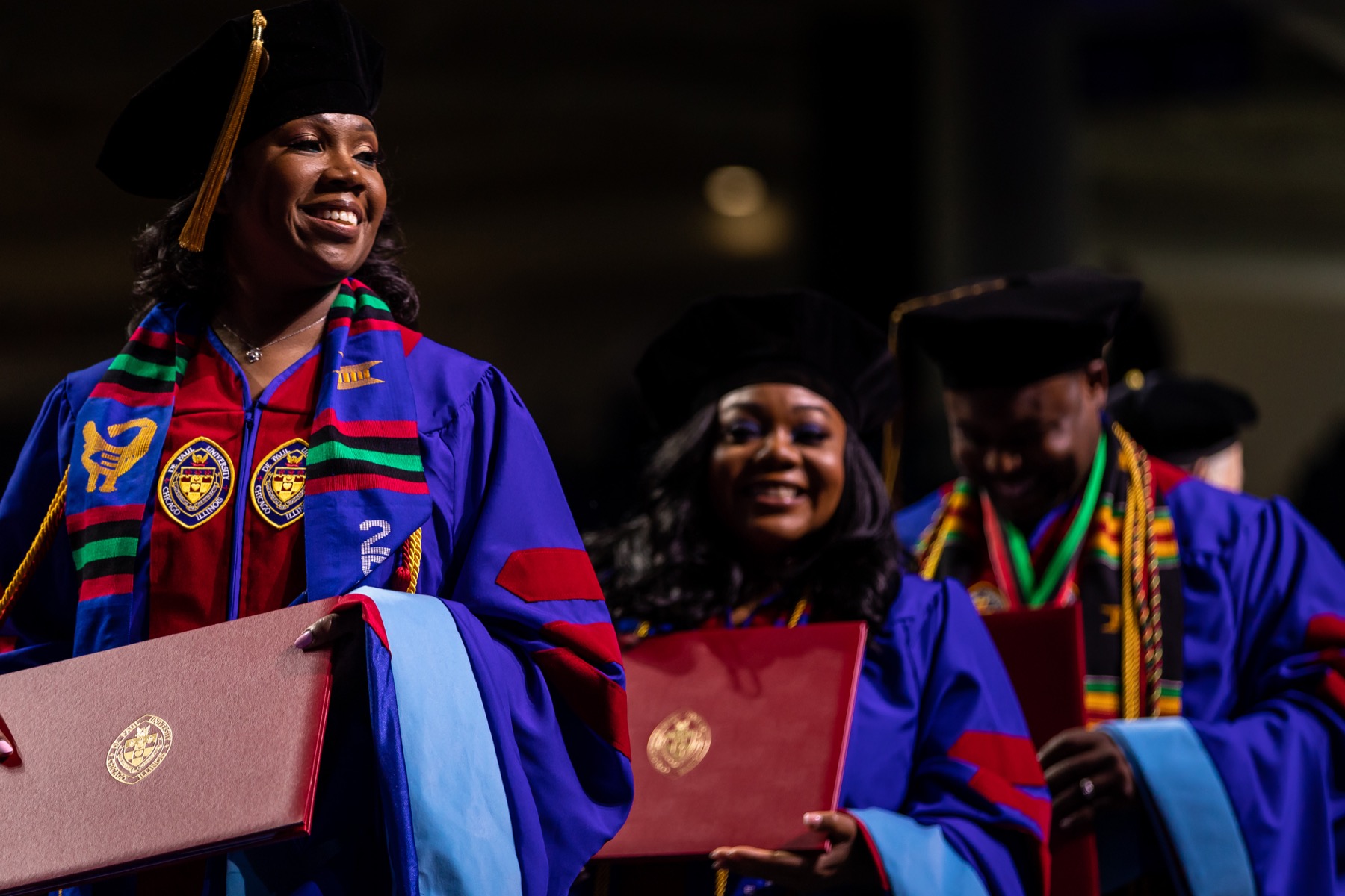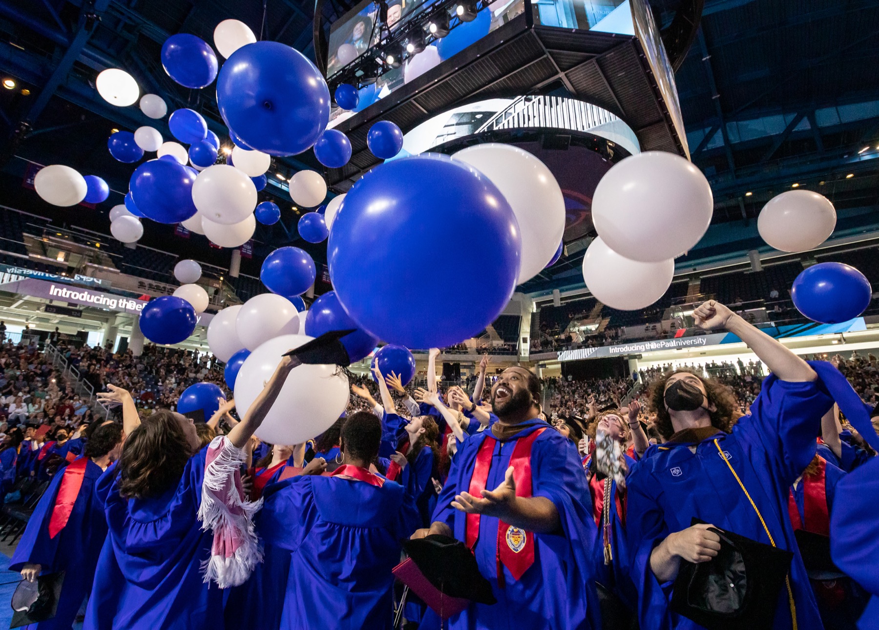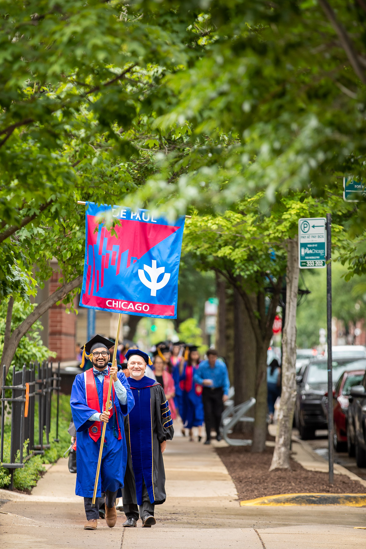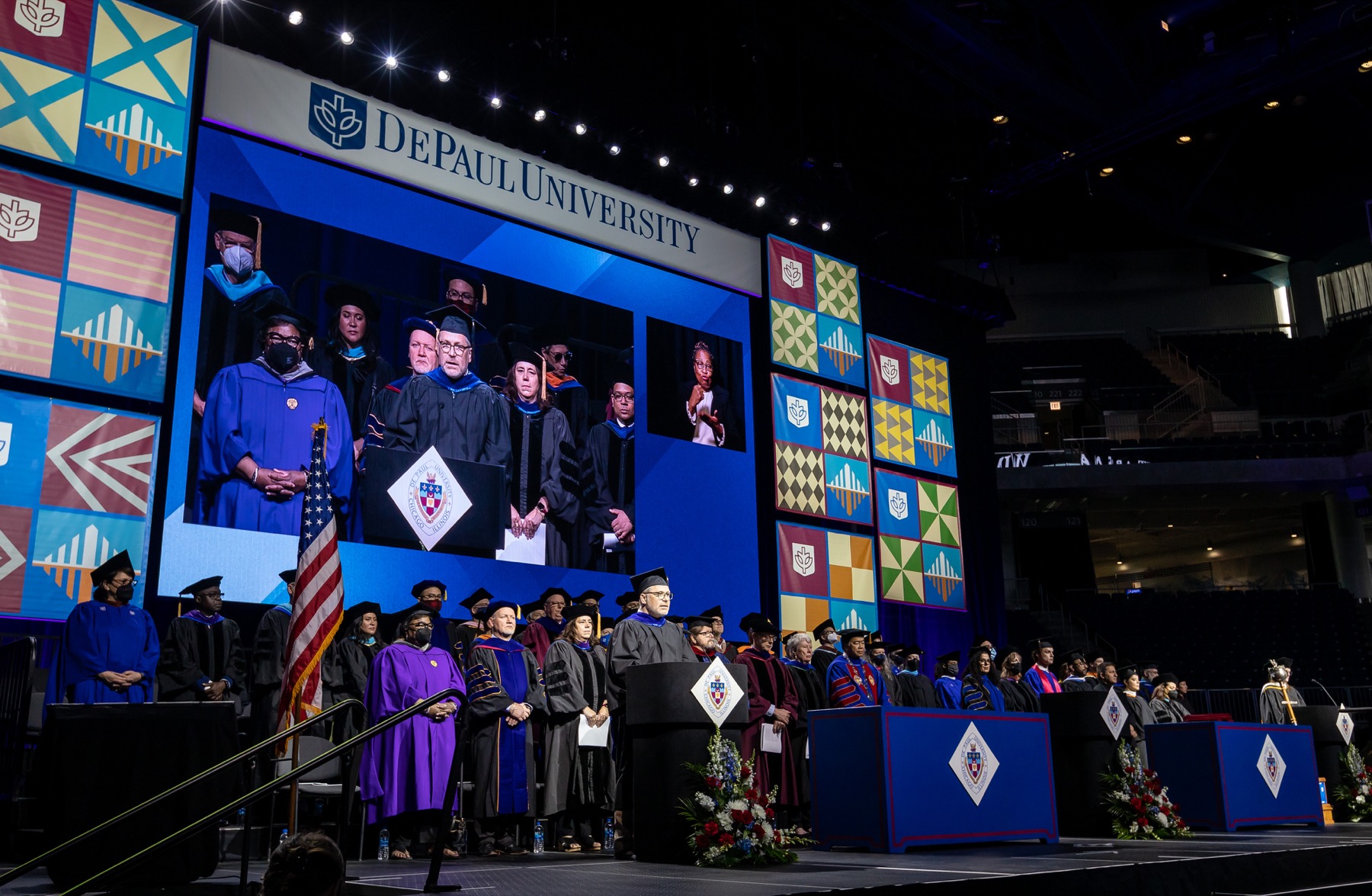 For the first time in two years, DePaul University graduates celebrated the end of their academic journey with in-person commencement ceremonies. From Baccalaureate Mass to the last of the commencement ceremonies, June 10 -12 was a weekend to recognize the accomplishments of the Class of 2022 and the support system of family, friends and faculty who helped them along the way. Approximately 4,500 Blue Demons participated in the weekend's festivities, while a total of roughly 6,300 students earned their degree this academic year.