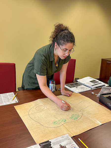 Victoria Smith, a licensed clinical social worker at University Counseling and Psychological Services, leads these D&D group therapy sessions with co-facilitator Nathaly Shammo, a clinical social work intern. Smith introduced D&D therapy this spring to lower the barrier to mental health care for students who might feel intimidated by traditional therapy.
