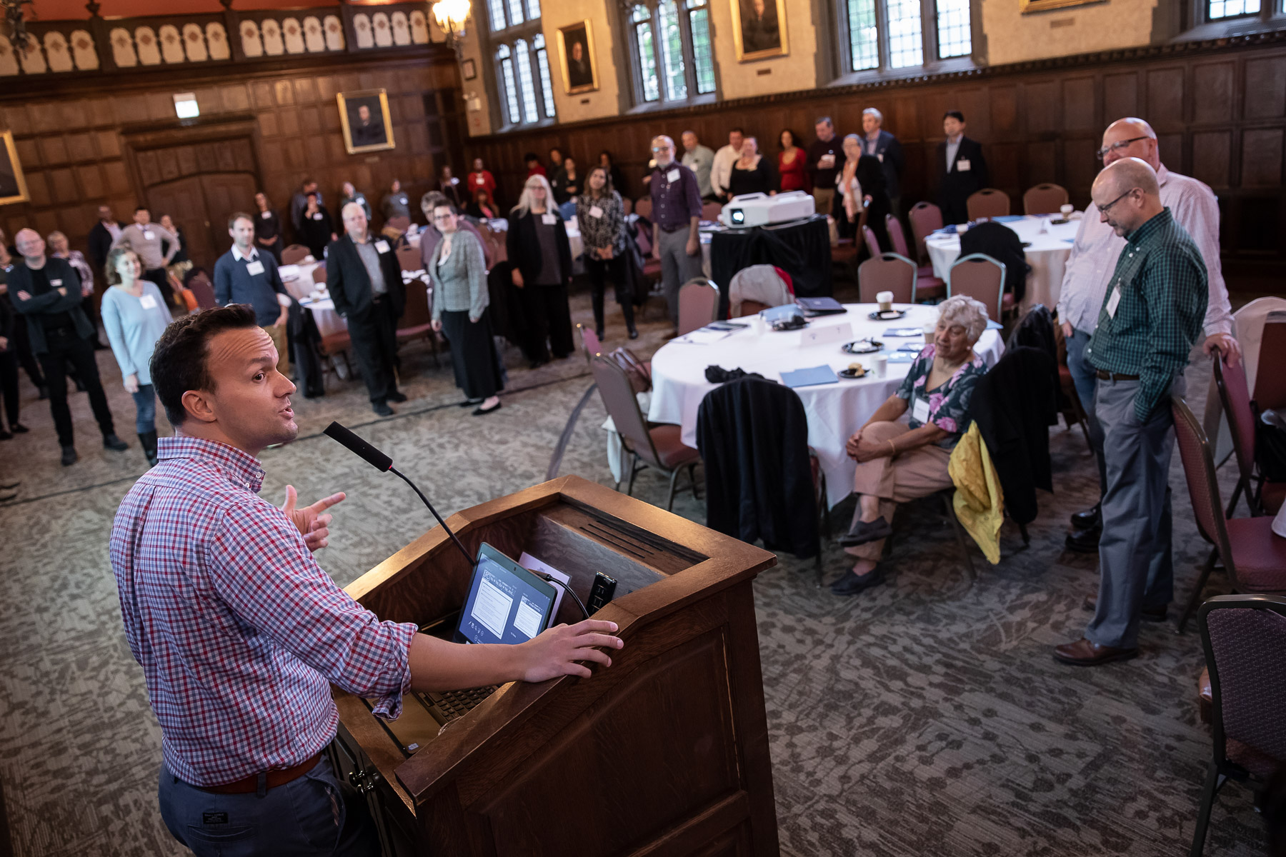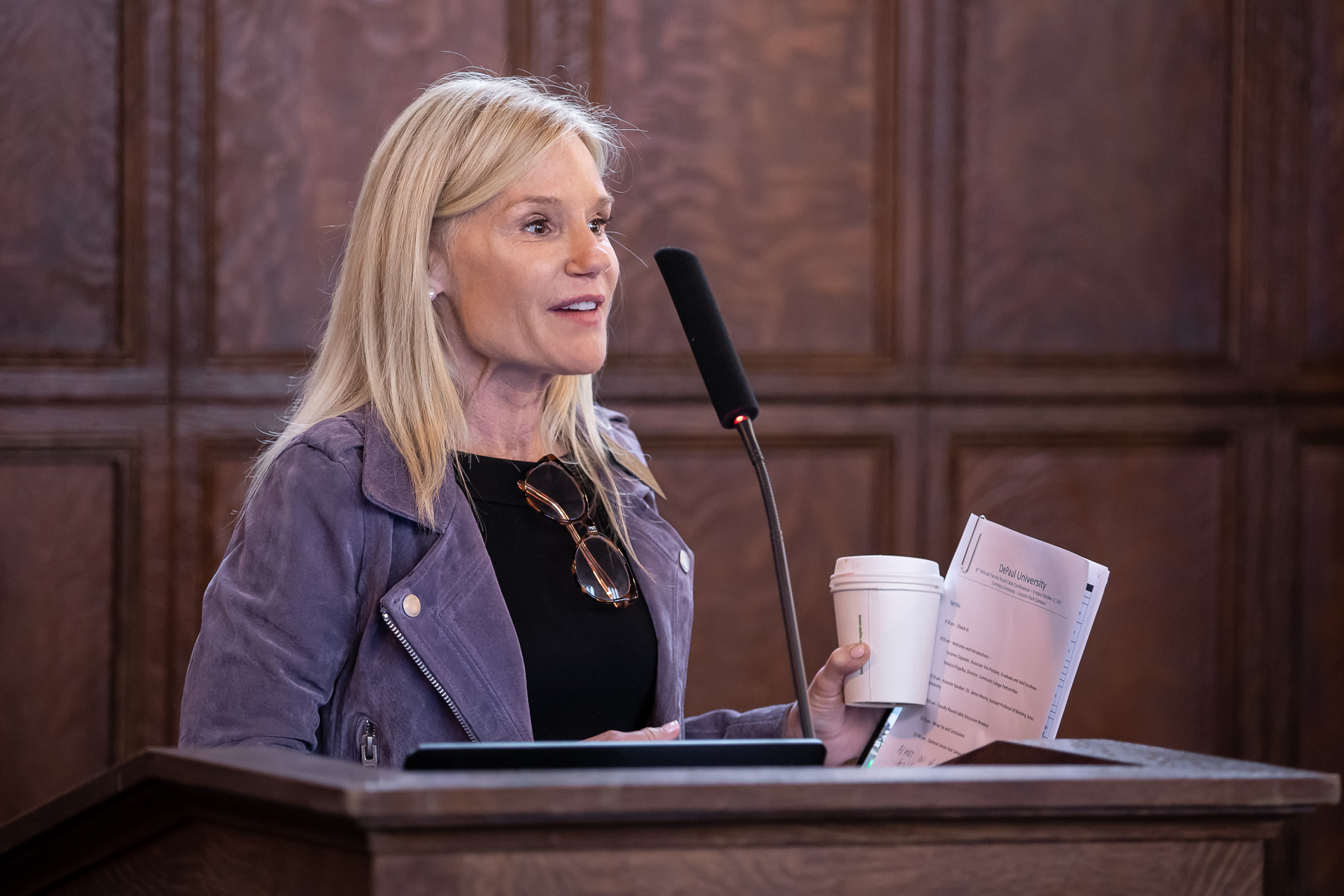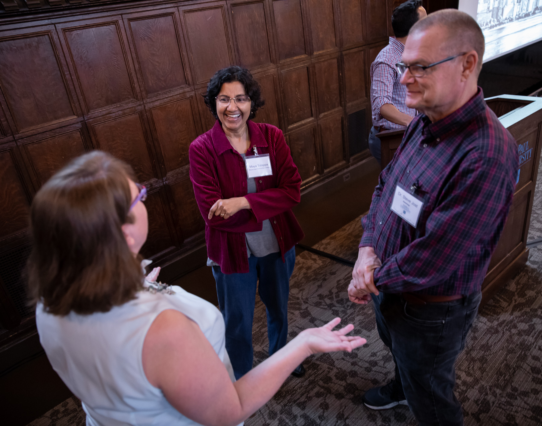 Faculty from DePaul and Illinois community colleges attended the 6th annual Faculty Round-Table Conference hosted by Community College Partnerships on Oct. 11. James Mourey, assistant professor of Marketing, conducted a keynote presentation and activity “Live from Chicago,” an interactive lesson in improve comedy techniques.