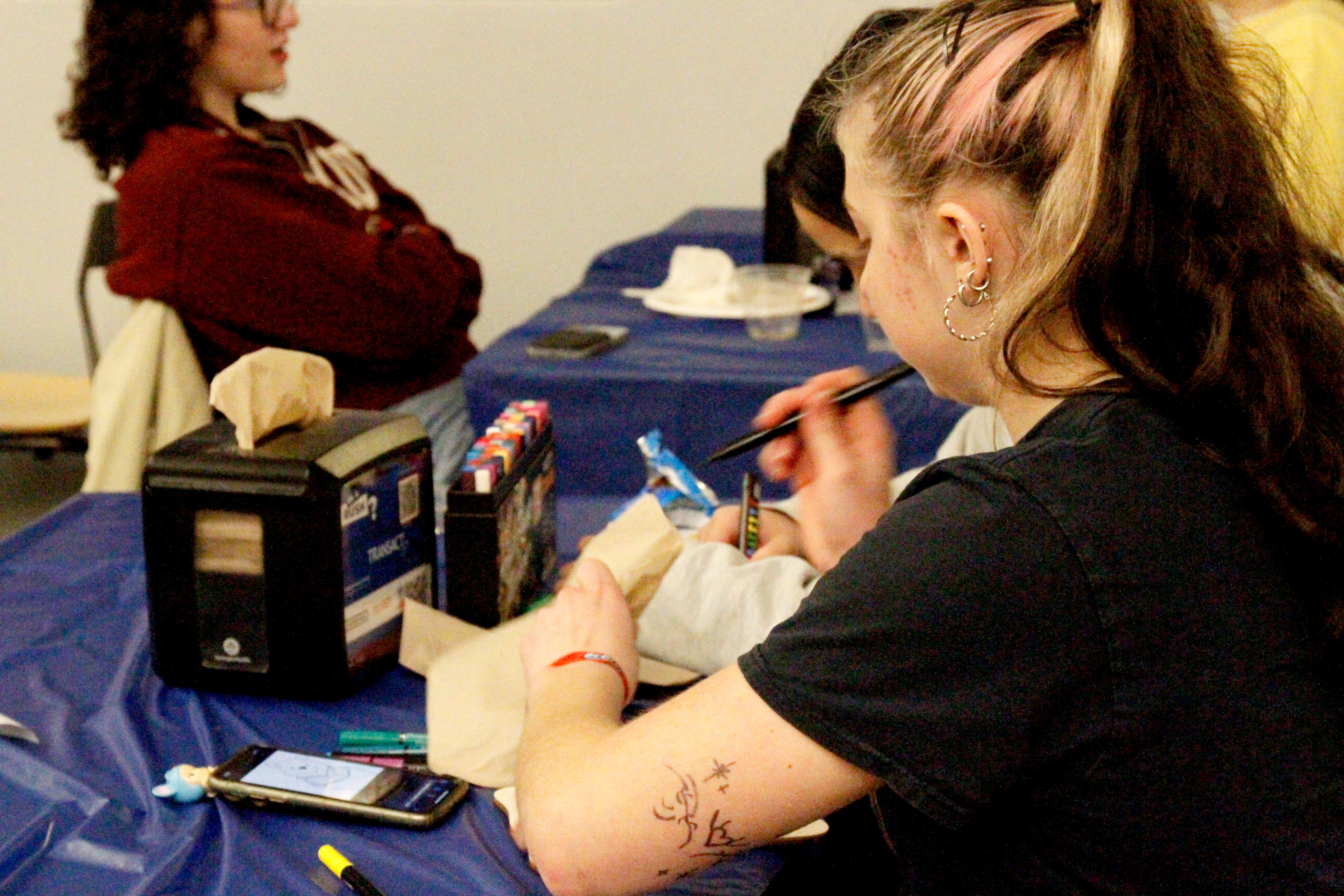 A student makes art during the Finals Breakfast. (Aubreonna Chamberlain/DePaul University)