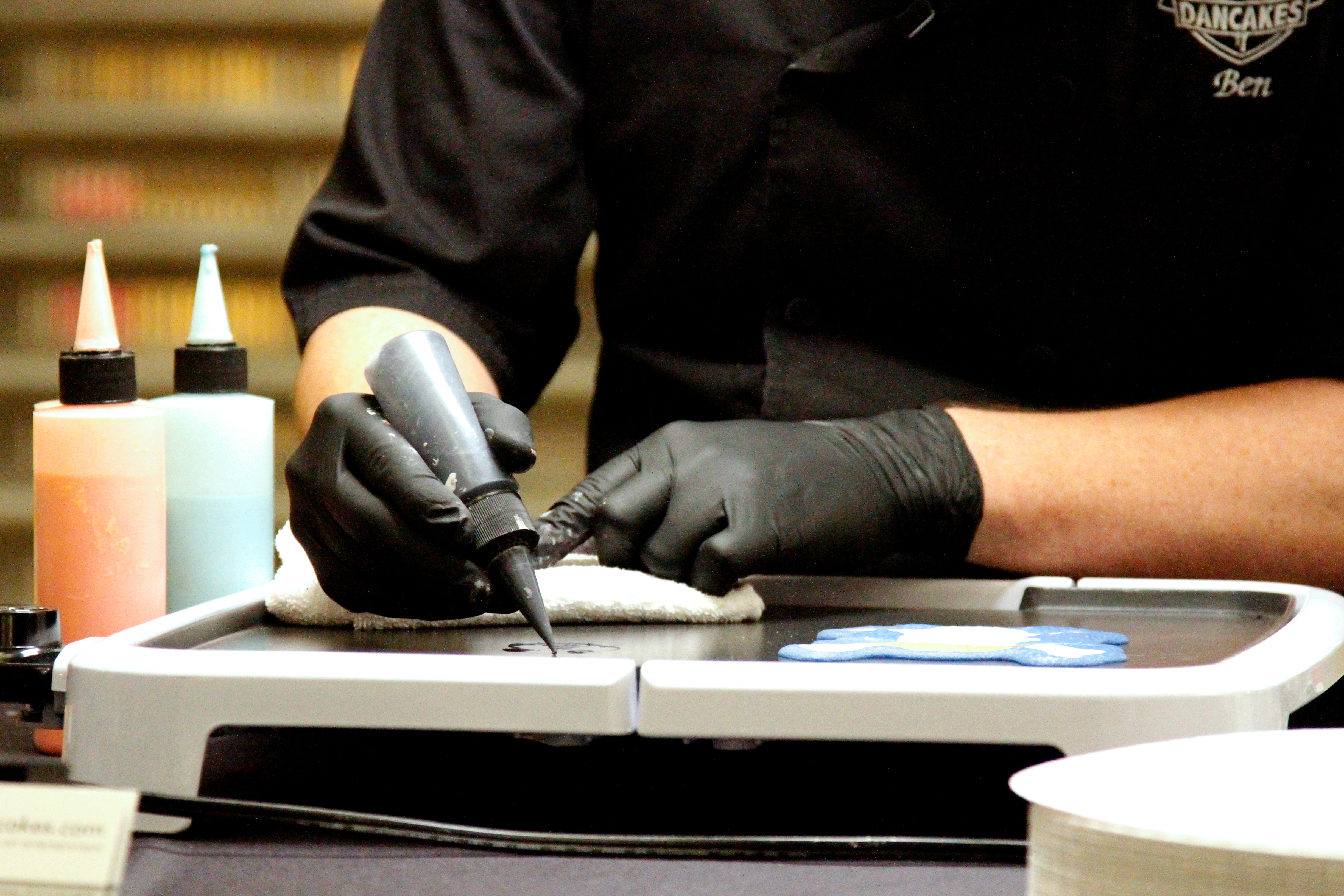 A pancake artist crafts a stunning piece for Finals Breakfast. (Aubreonna Chamberlain/DePaul University)