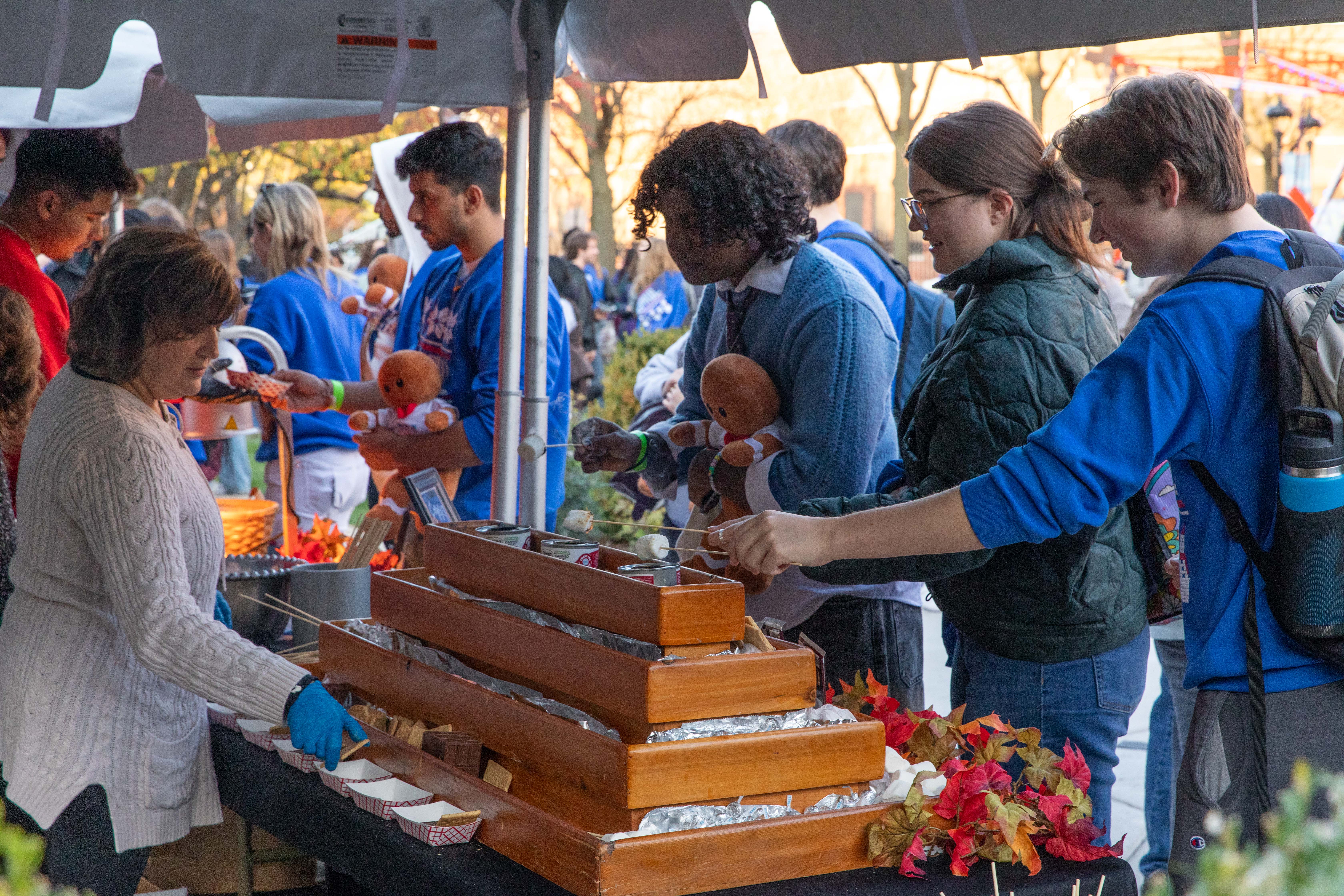Students roast marshmallows while getting in the holiday spirit. (Keeton Holder/DePaul University)