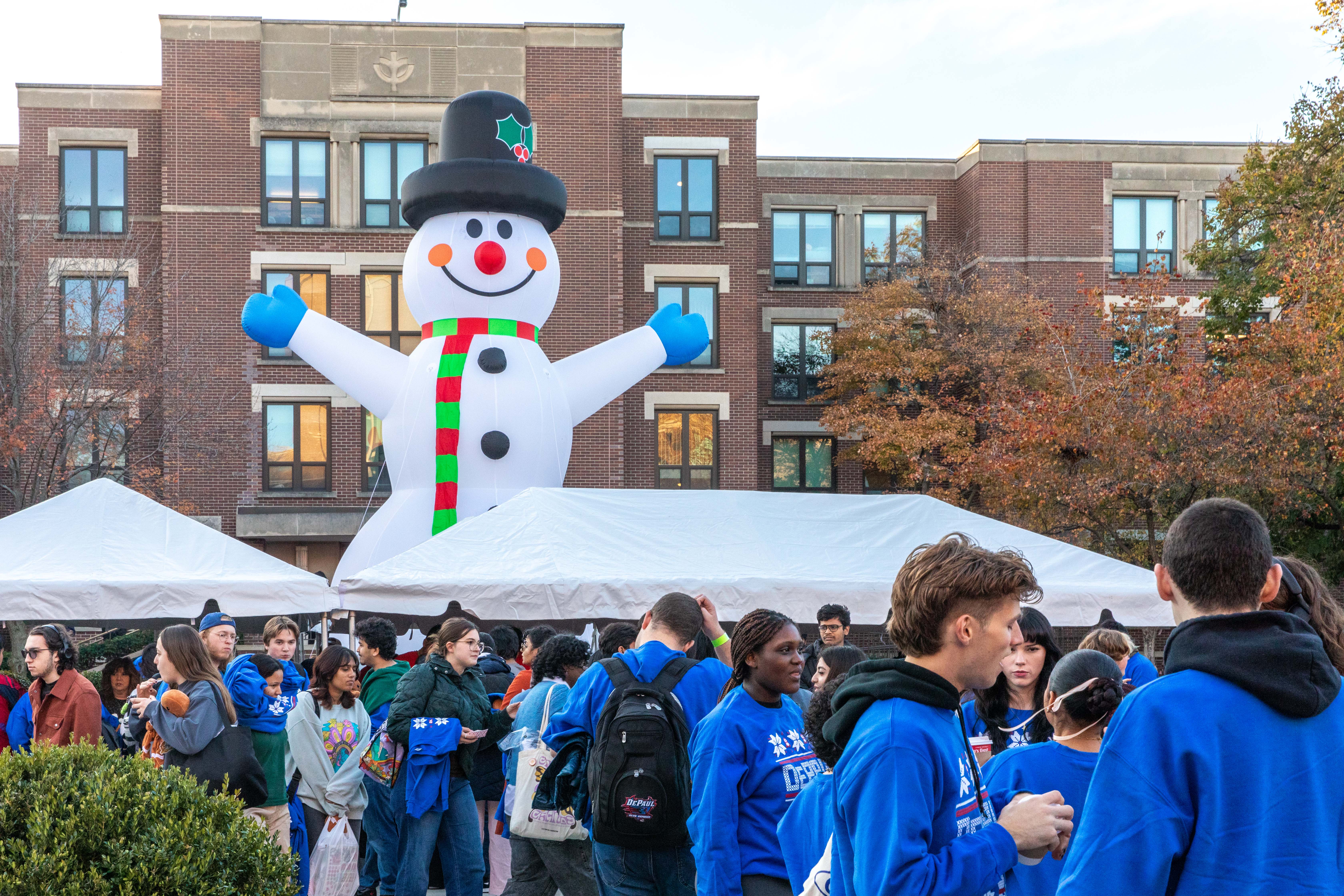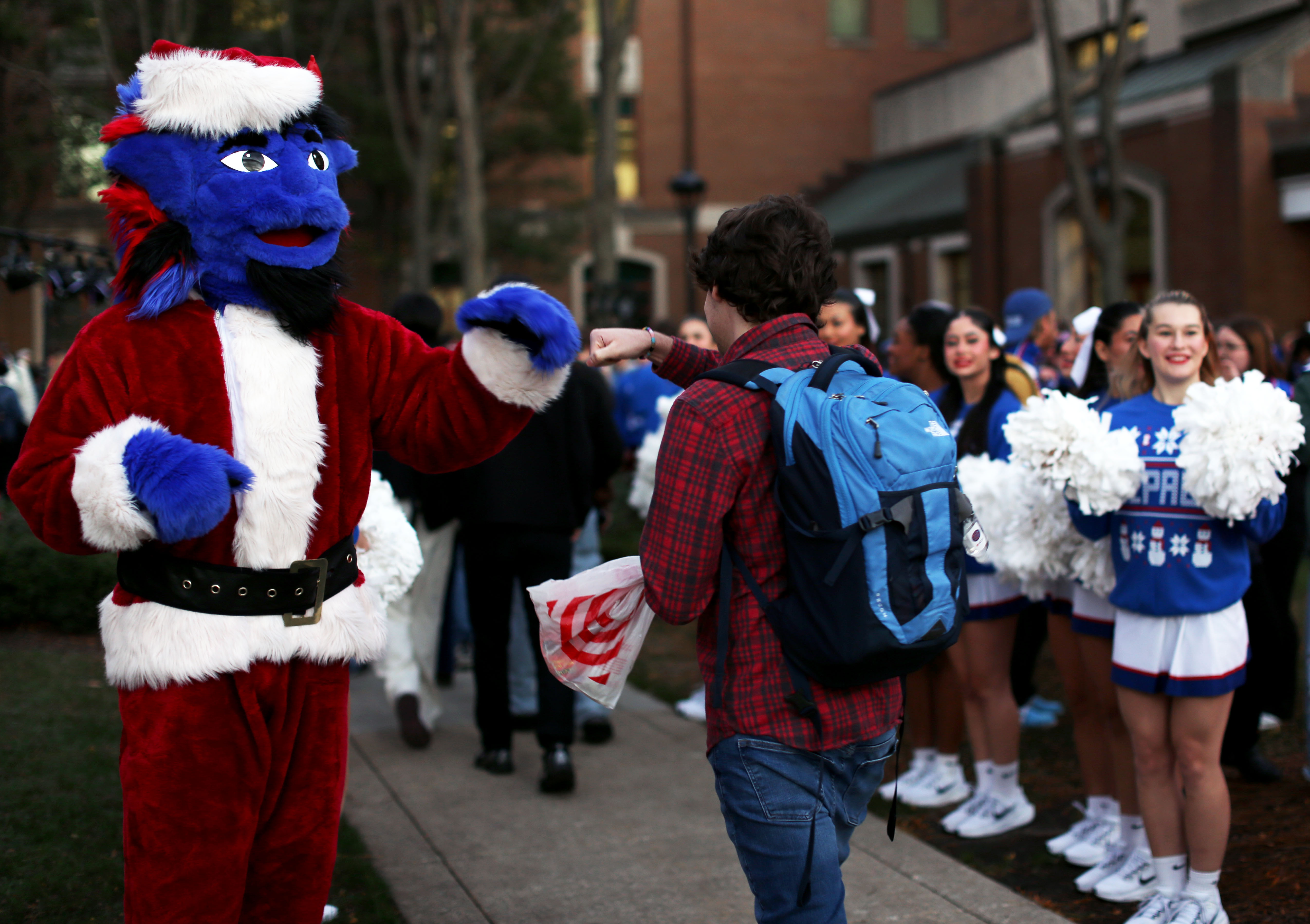 DIBS gets students in the holiday spirit alongside the DePaul cheer team. (Kit Wiberg/DePaul Student Photo Agency)