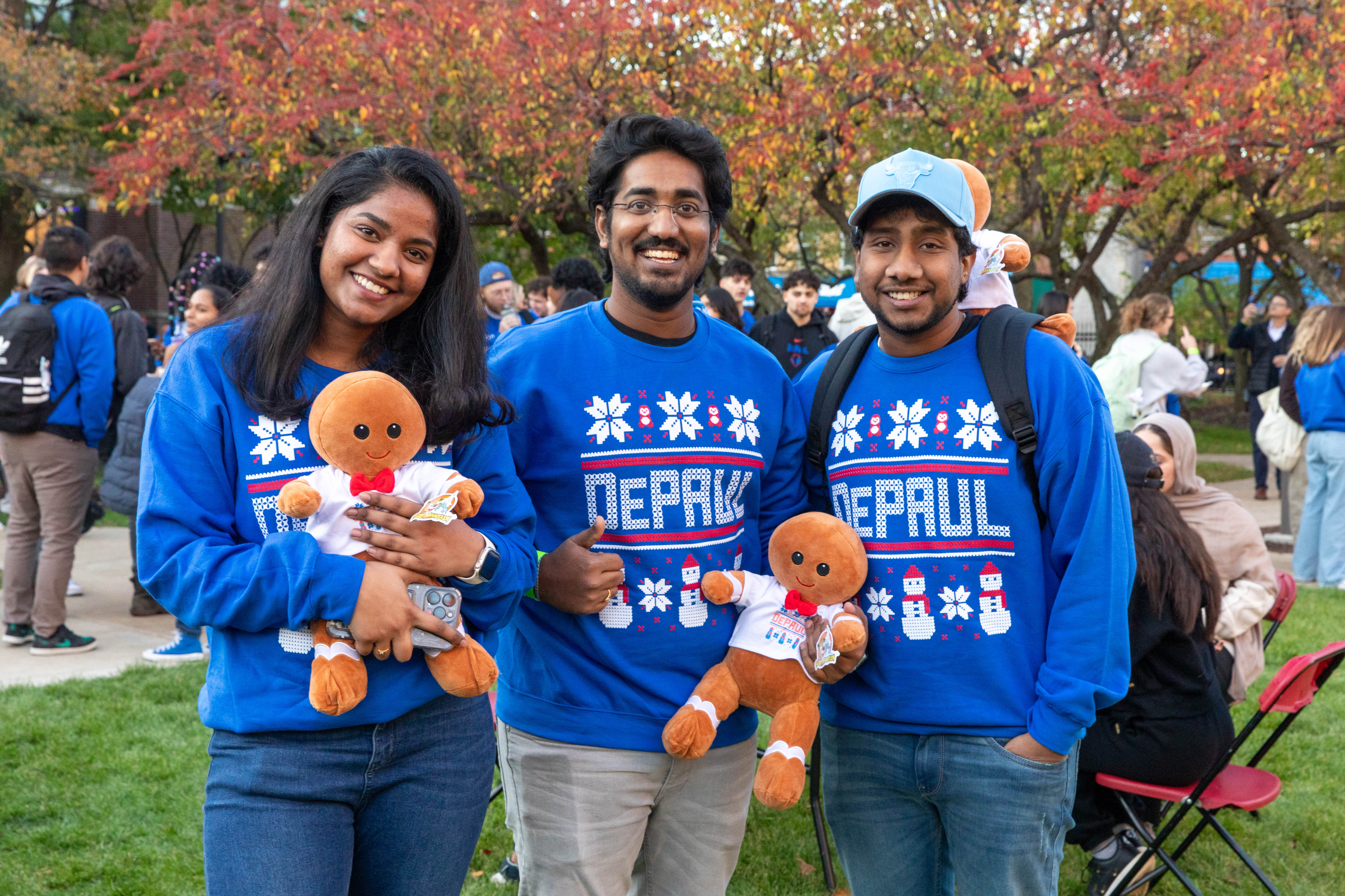 Students show off their new stuffed gingerbread people. (Keeton Holder/DePaul University)