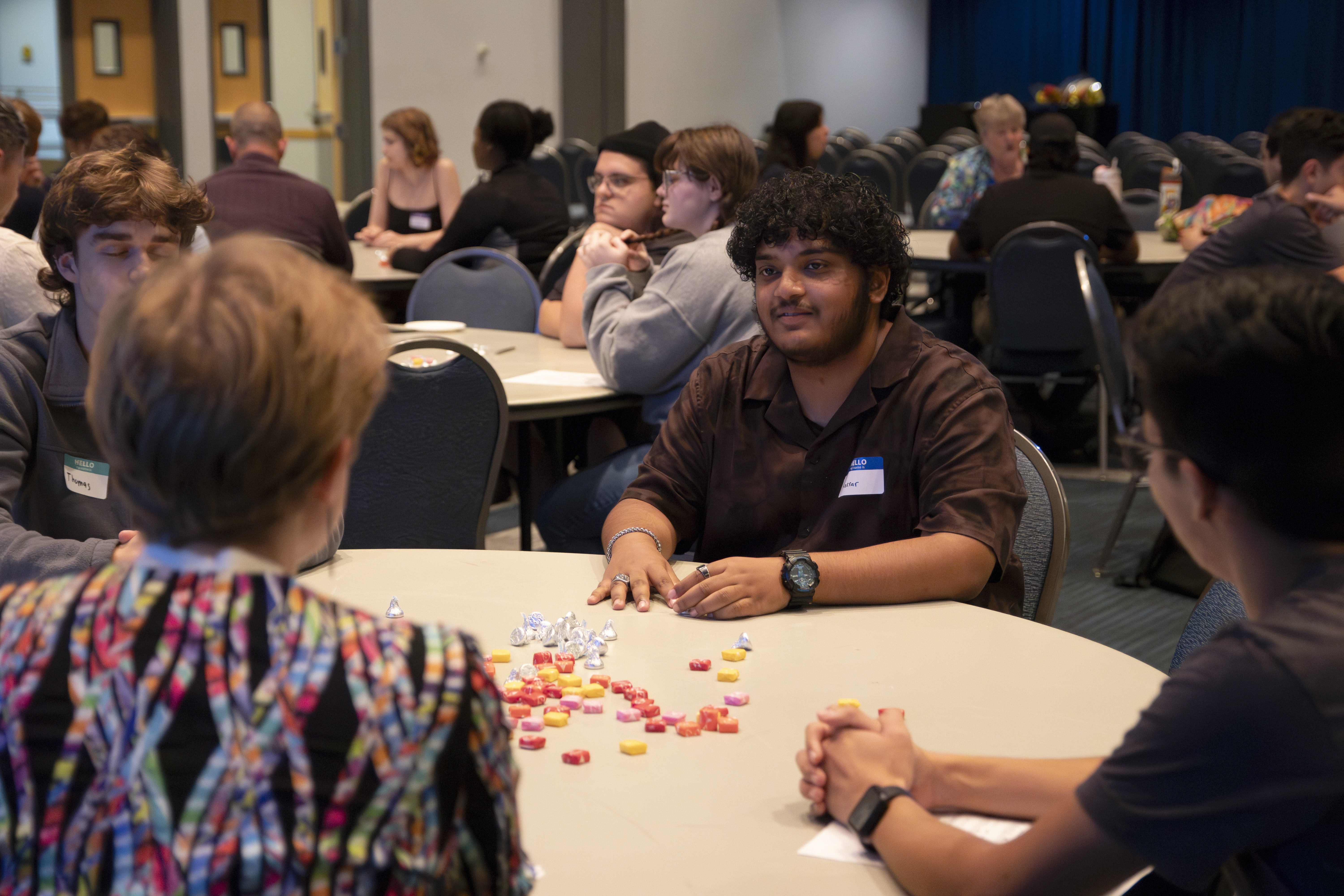 Student Jaskit Kaur discussed light as a metaphor and symbol in the Sikh faith. Students also sang the Jewish song “Roll Into Dark” as well as the ecumenical Christian song, “Within Our Darkest Night.” After gathering at tables to share their own life experiences, those gathered watched the dancers perform again, this time with the new knowledge of how people from other faith backgrounds and experiences have moved through difficult times.