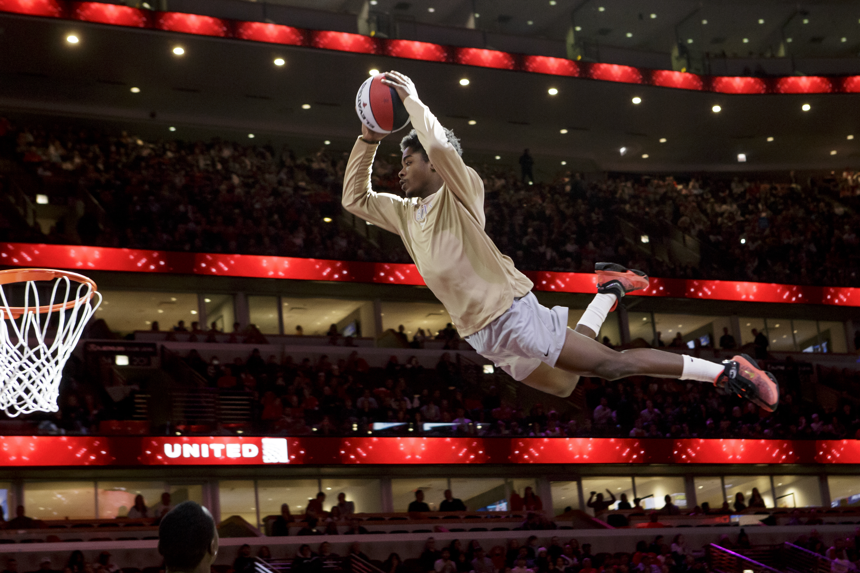 DePaul senior Jamari Grant loves delighting a crowd. Since 2015, he has performed as a Jesse White Tumbler, using mats, trampolines and teammates to create awe-inspiring flips and slam dunks. As a DePaul Blue Demon, he’s served in roles with athletics, student government and Alpha Phi Alpha Fraternity.