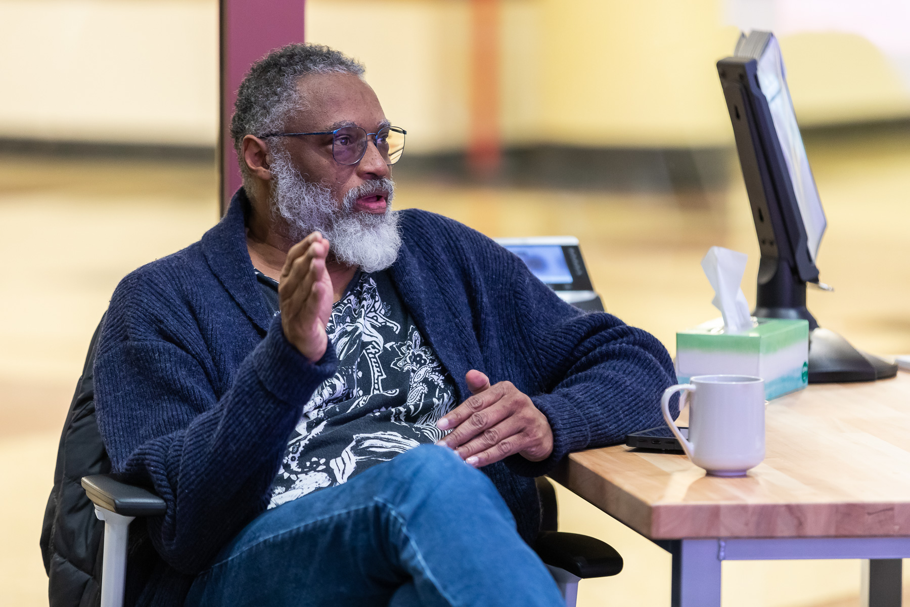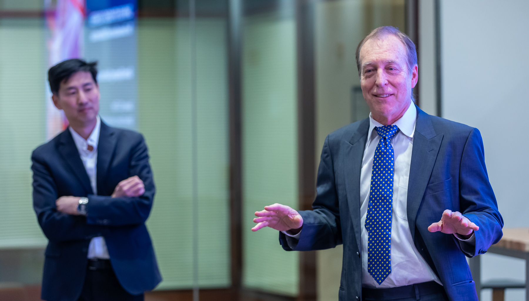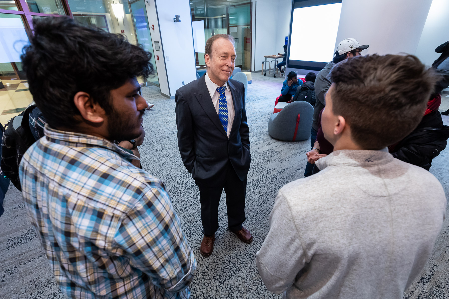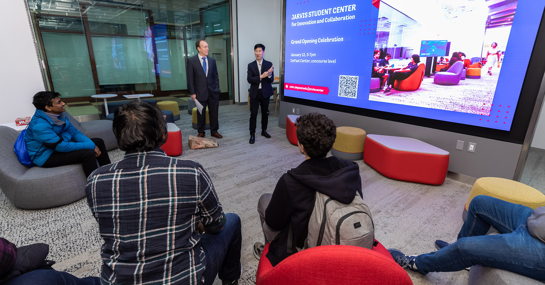 The Jarvis College of Computing and Digital Media hosted a grand opening celebration for its new Jarvis Student Center for Innovation and Collaboration on Jan. 12. Eugene Jarvis, the center's benefactor, attended the event and spoke with students.