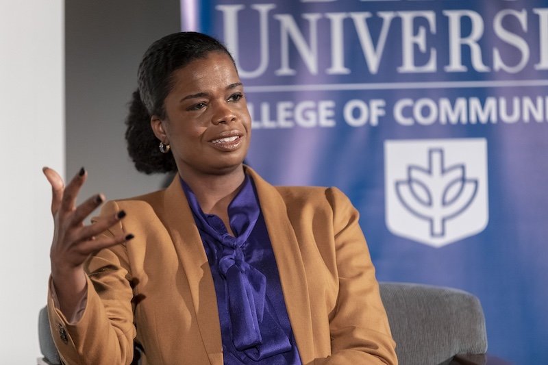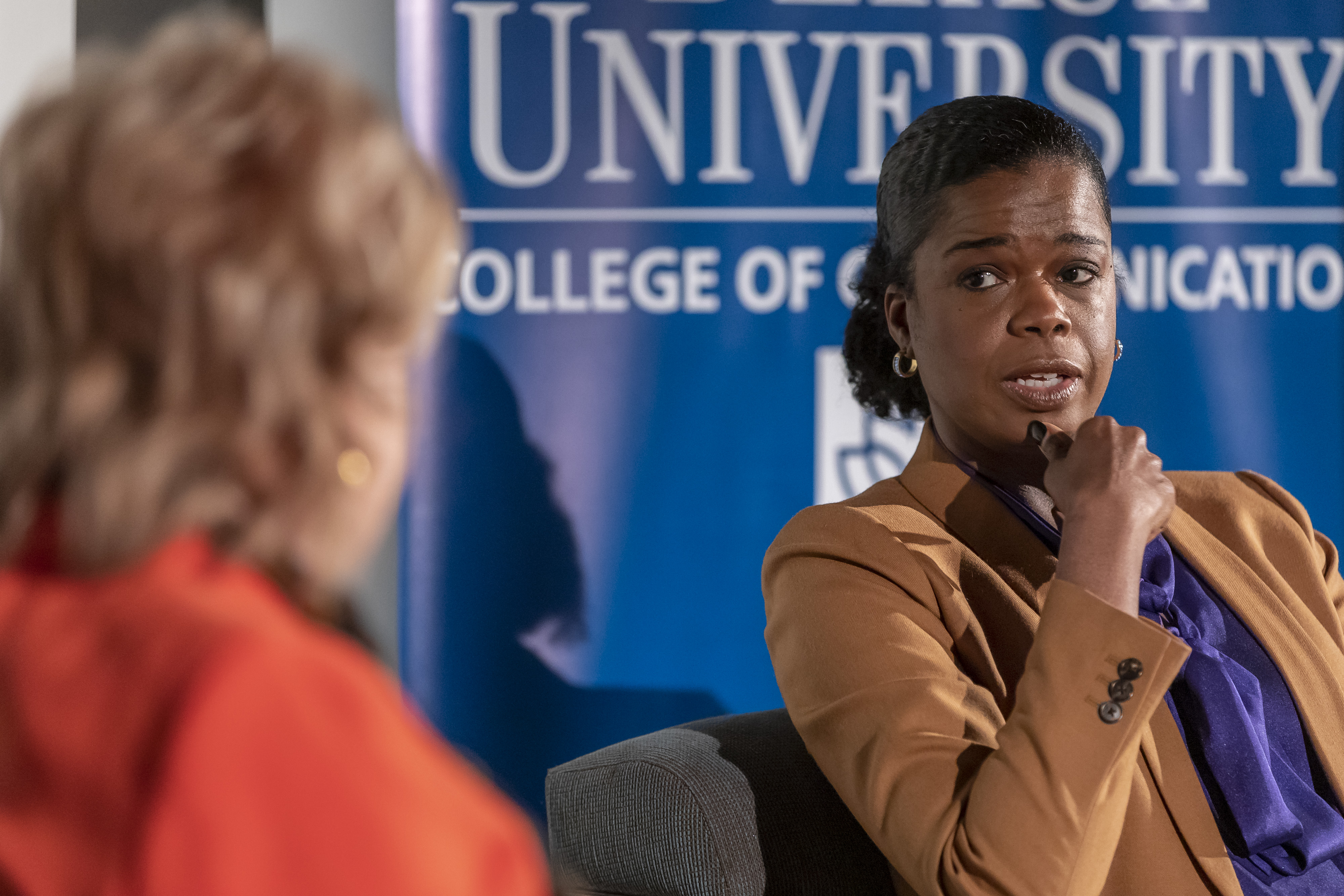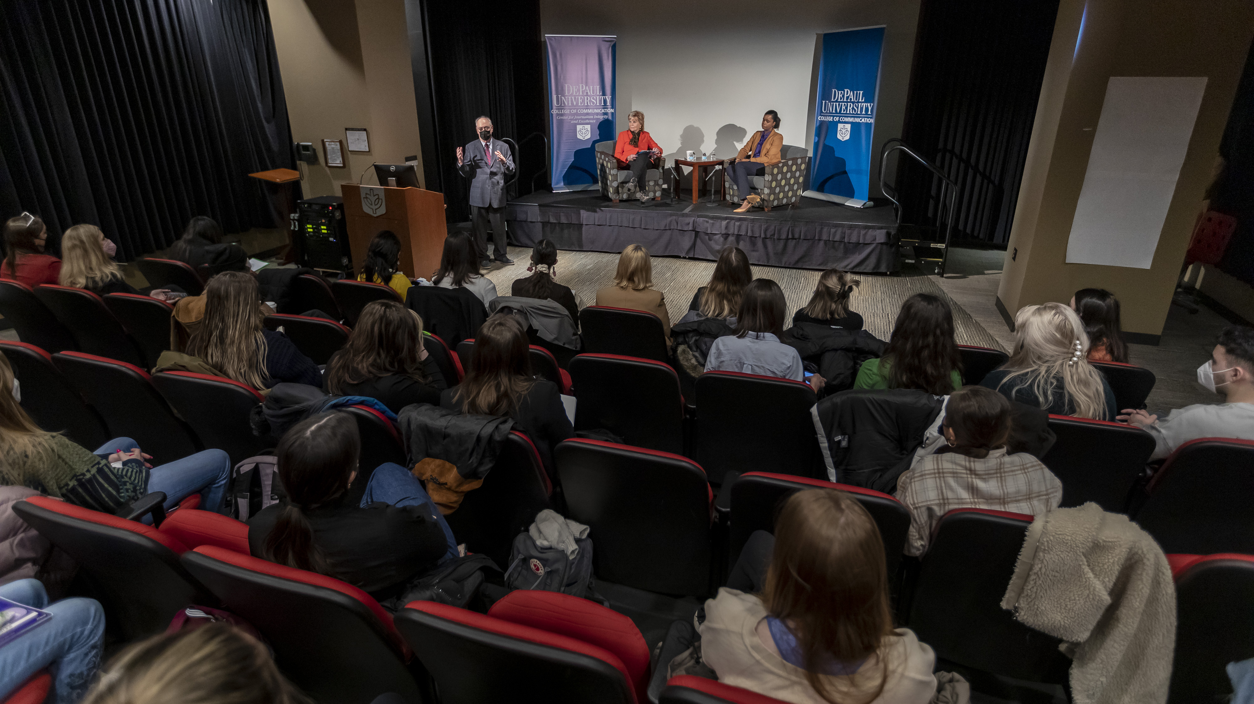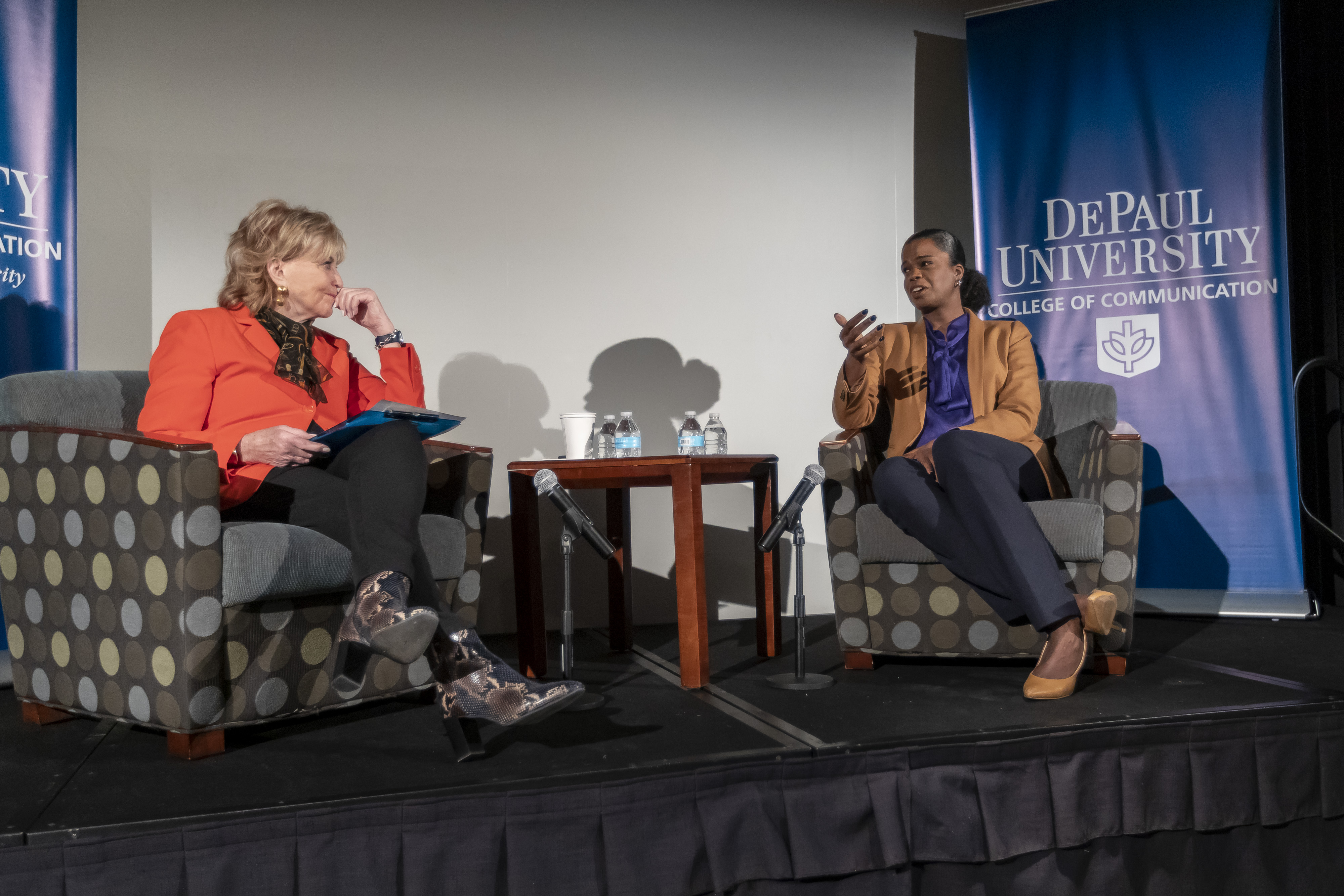 On February 17, 2022, Center for Journalism Integrity and Excellence co-directors Carol Marin and Don Moseley hosted Cook County State's Attorney Kim Foxx. Marin interviewed Foxx with an audience of Advanced Reporting students, college faculty and staff members, and friends of the college.