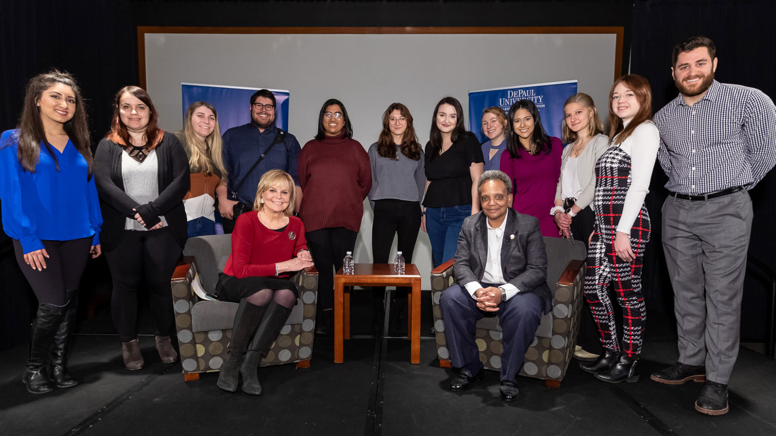 On Jan. 28, Chicago Mayor Lori Lightfoot visited DePaul's Loop Campus to talk with students about journalism and the media. The candid conversation was hosted by Carol Marin and Don Moseley, co-directors of the Center for Journalism Integrity and Excellence in the College of Communication.