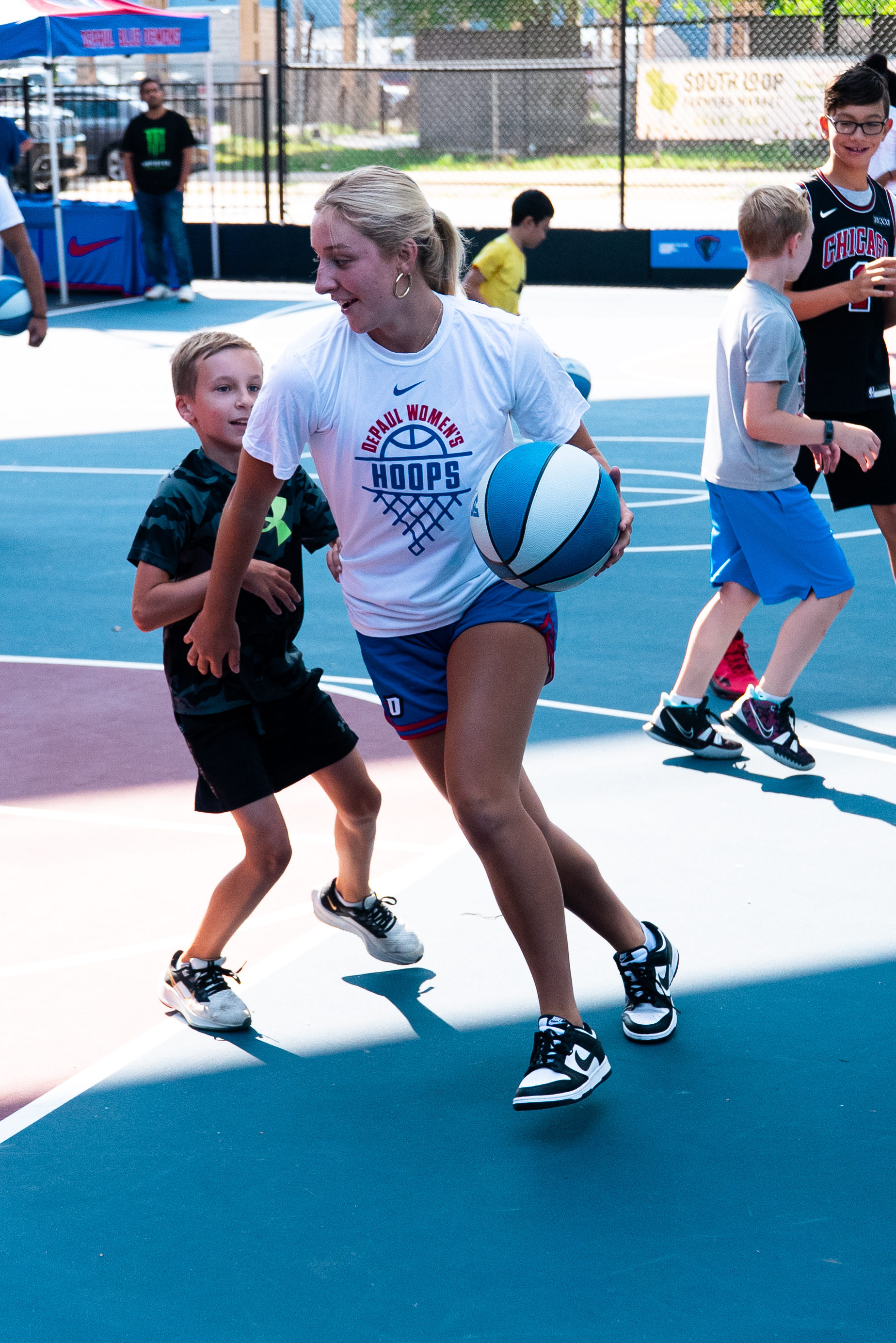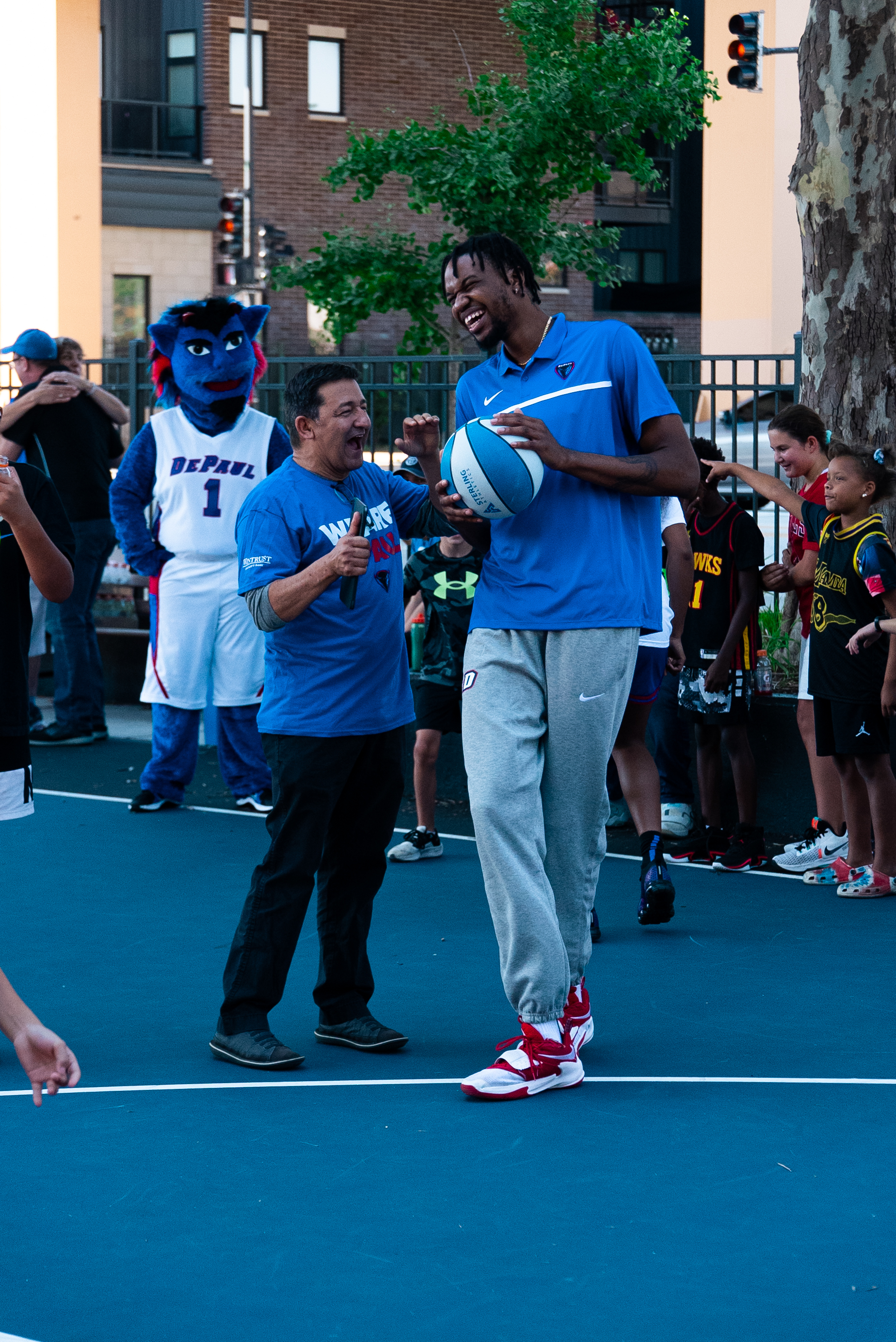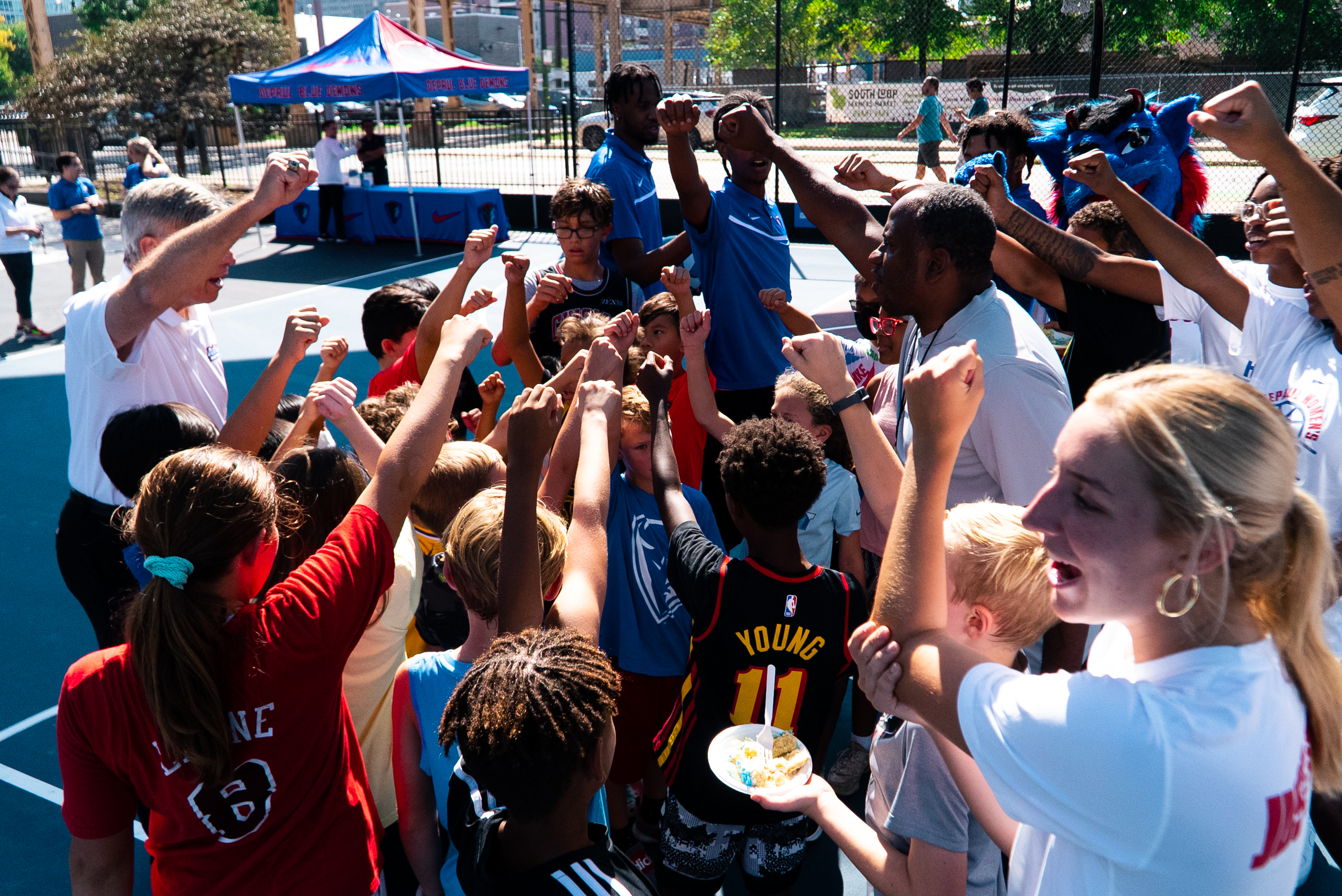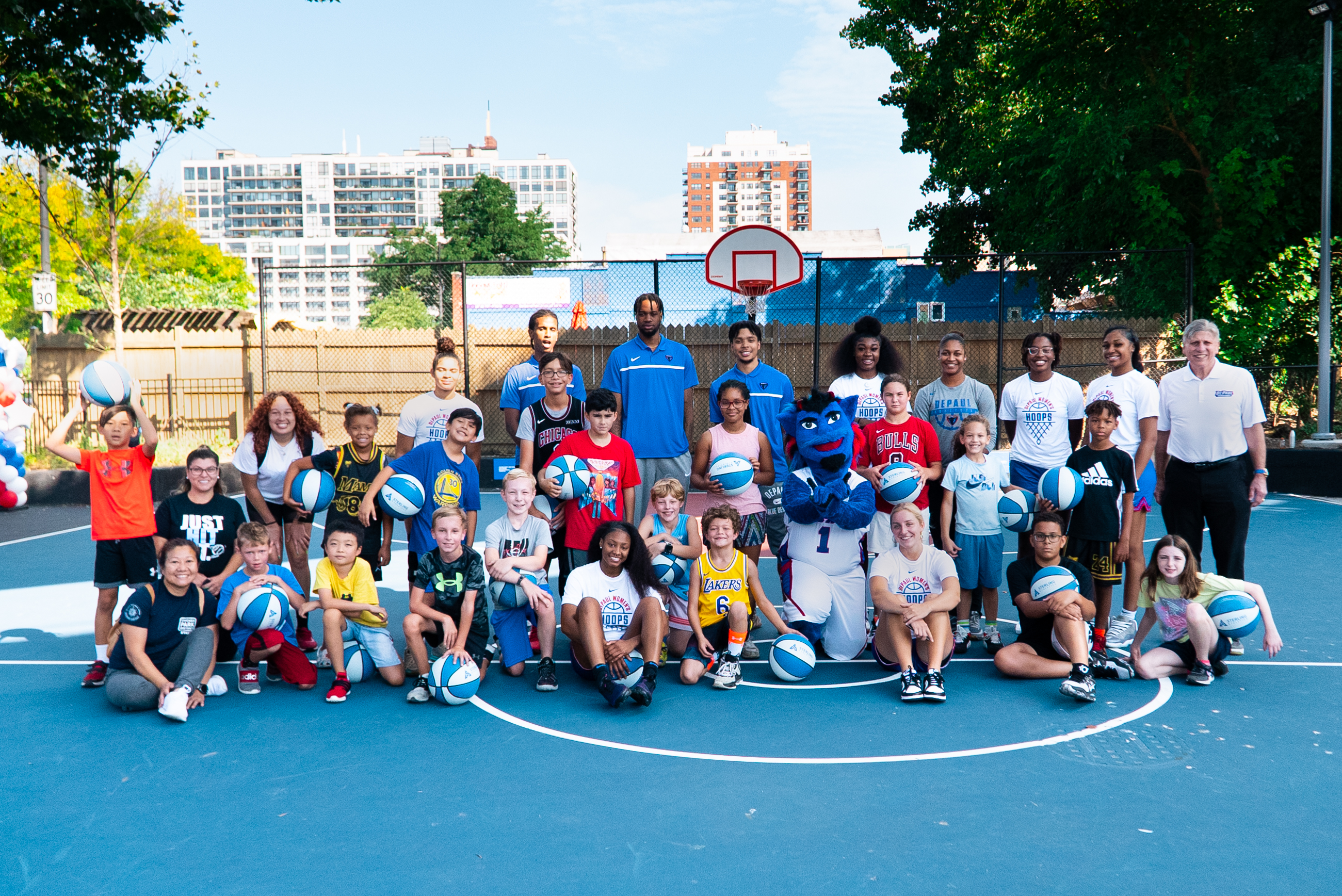 As part of the university's 125th anniversary celebrations, DePaul hosted a community event at the newly-renovated Lin Park on Sept. 17. President Rob Manuel, DIBS, Blue Demon athletes and 100 other members of the Chicago community came together for basketball drills, sunshine and DePaul cheer.