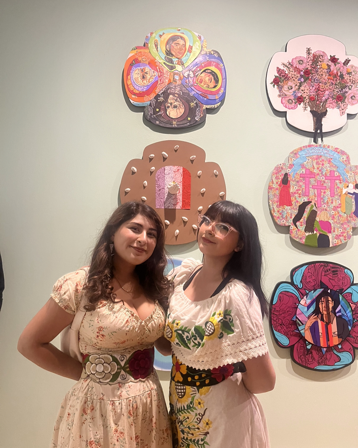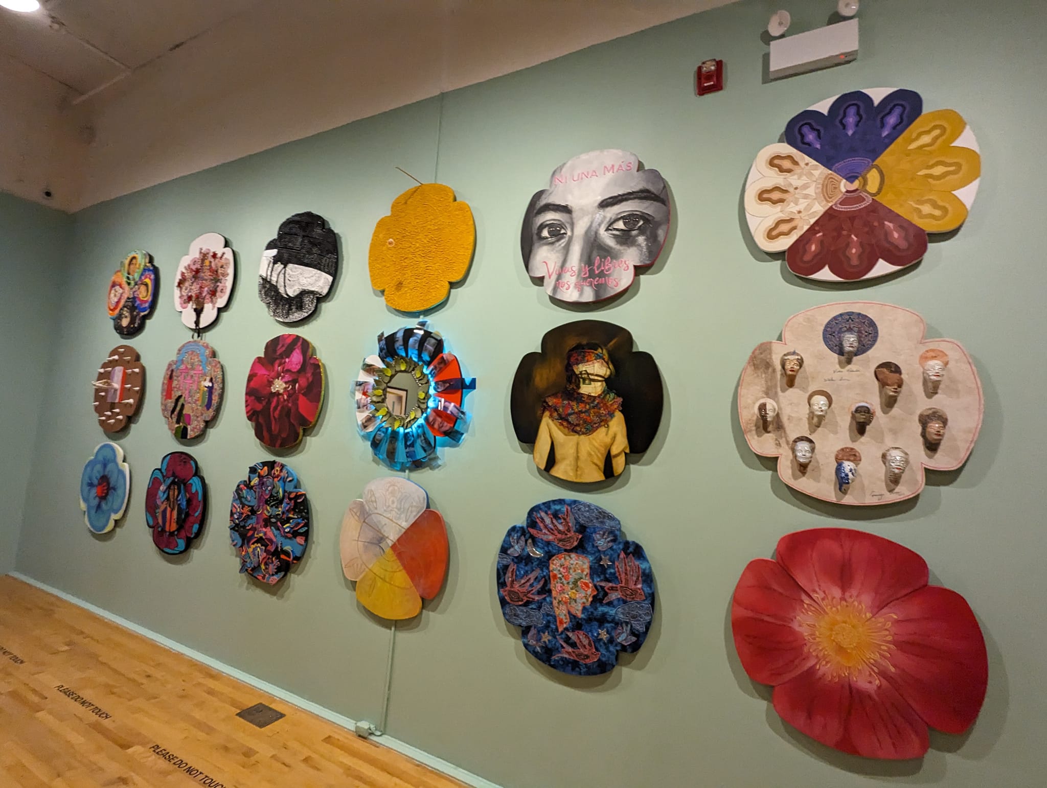 This exhibition includes a big collaboration between 18 local artists that each created one of these flowers. They were given a broad topic: femicides of the world, the Day of the Dead, and the remembrance of the women who have passed.
