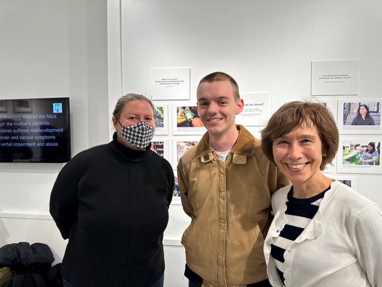 This connection through time and space is woven into the exhibition through the inclusion of photographs from DePaul students covering issues of pollution in Illinois. Journalism student Quentin Blais shares a story about lead toxicity in soil, and alumnus Richie Requena writes about monitoring air pollution in Cicero. Both stories remind visitors to be aware of any pollution in their own neighborhoods. Visitors are also invited to upload their own photographs related to local pollution.