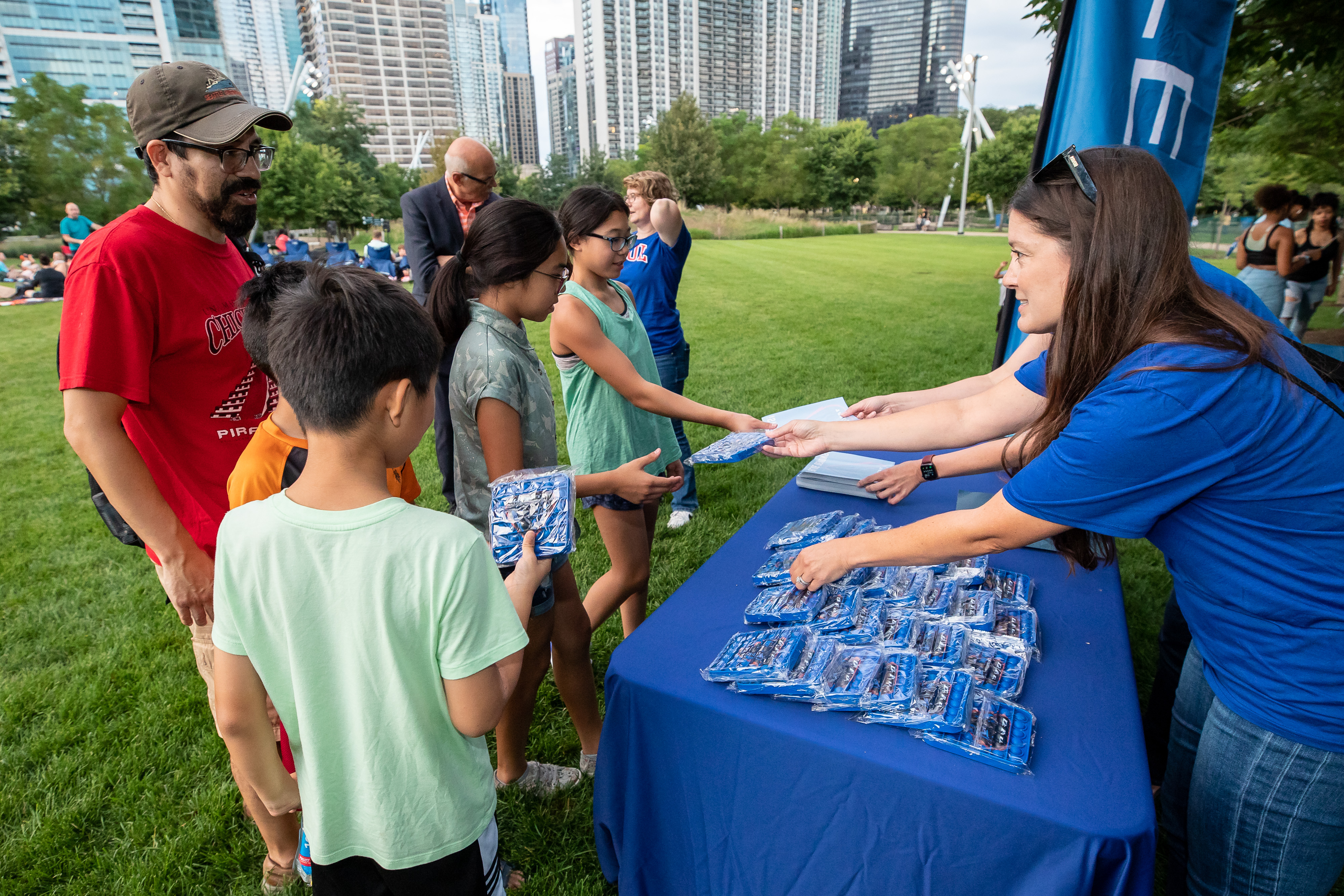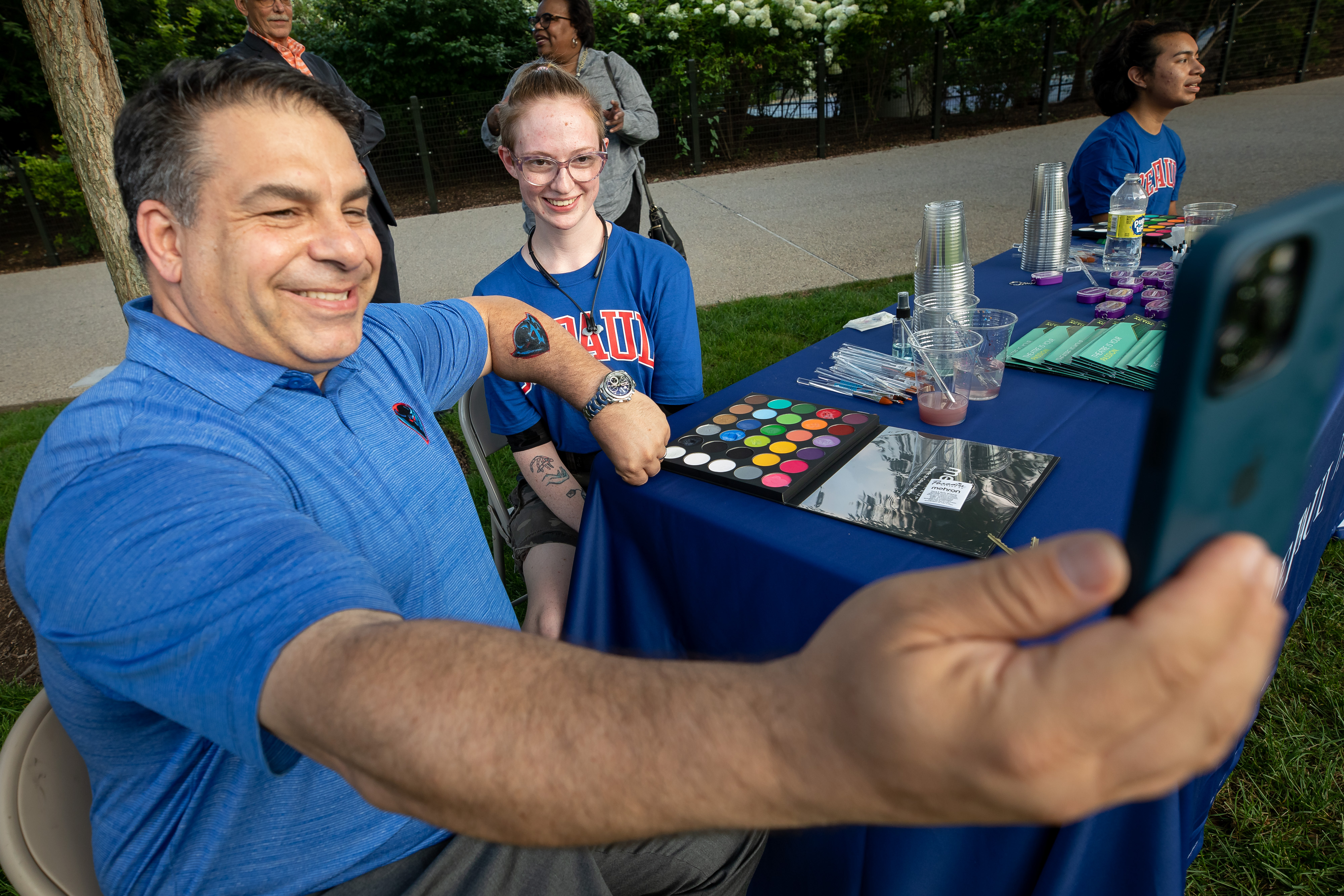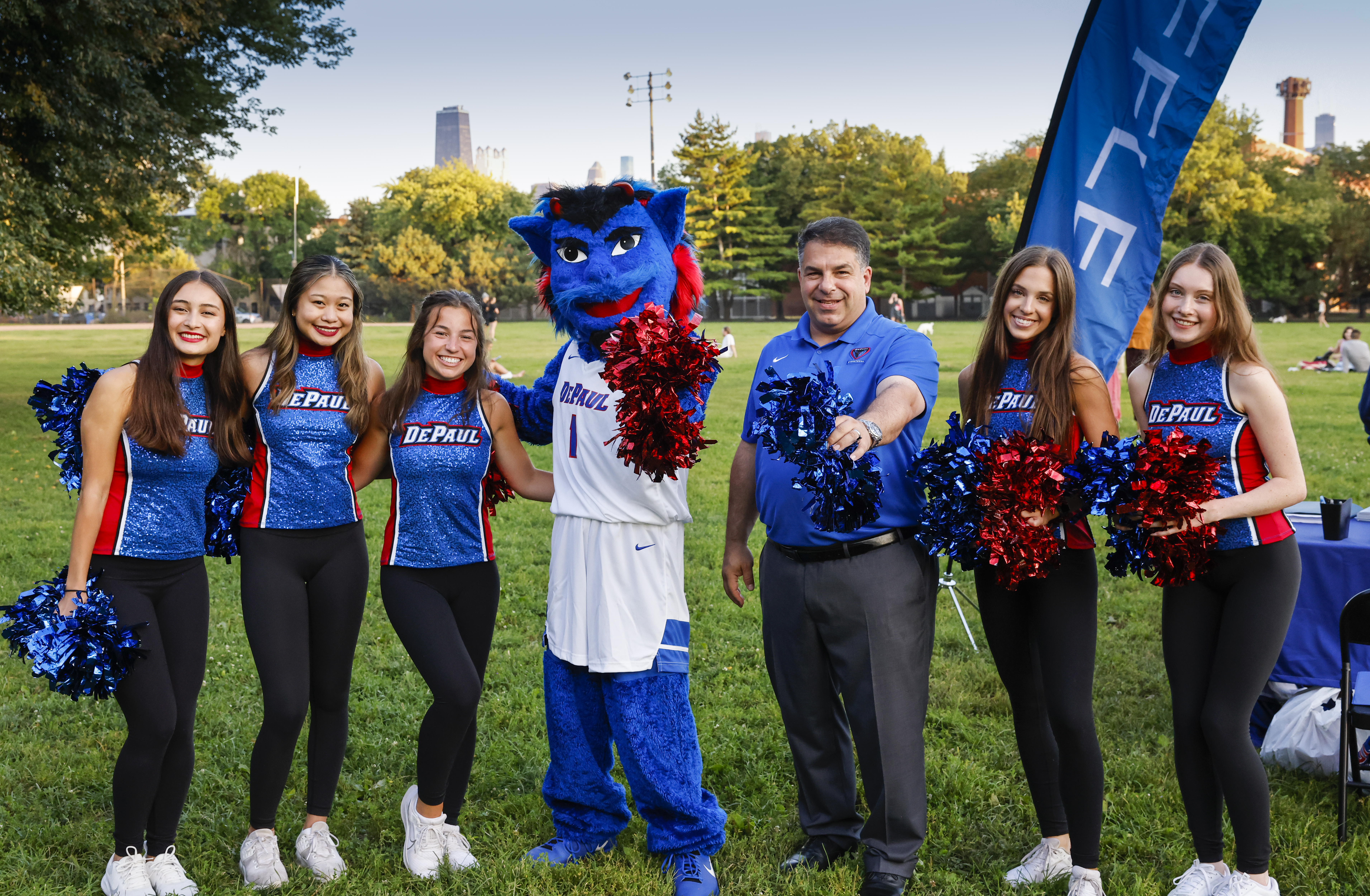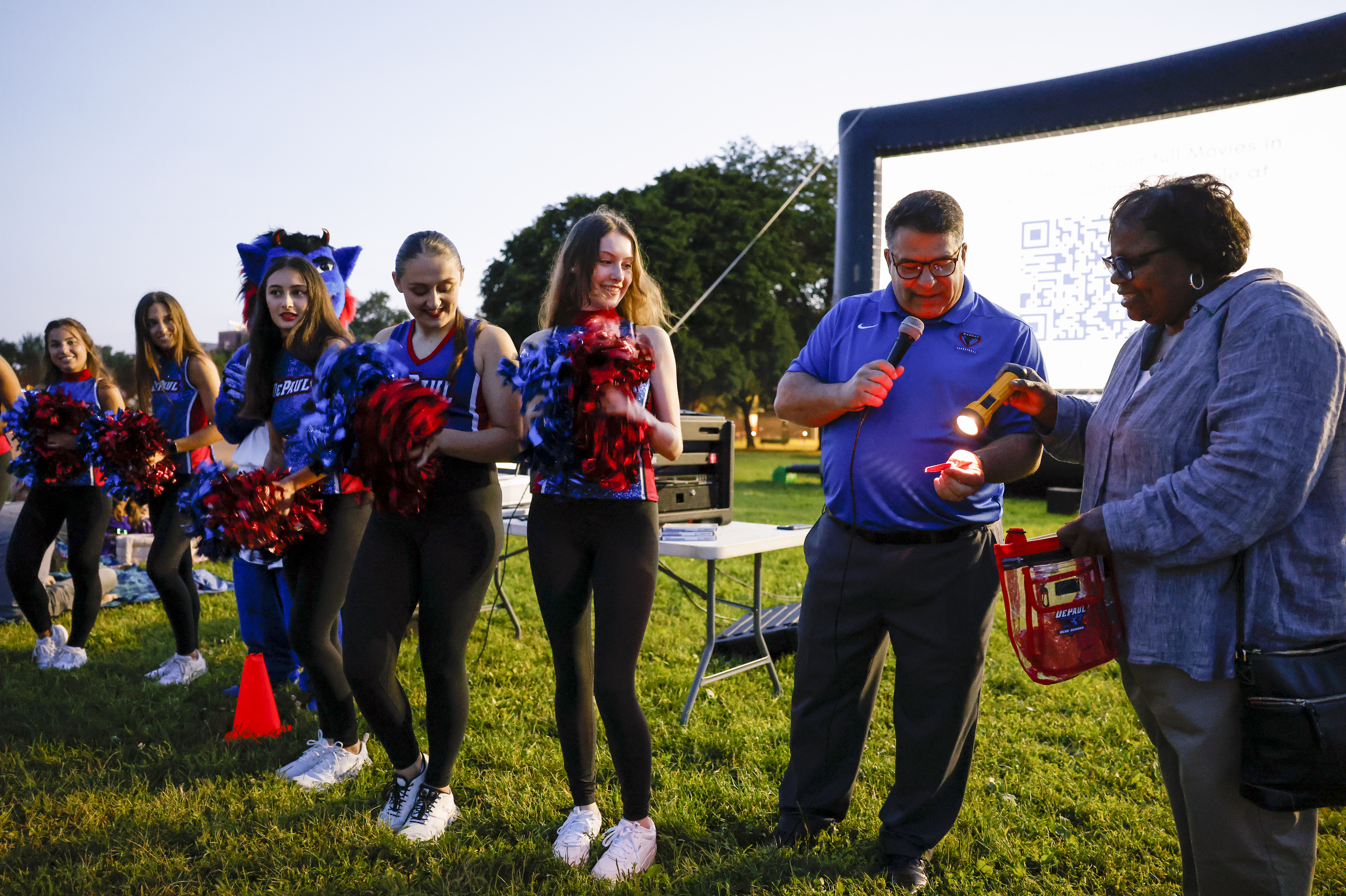 Over the summer, DePaul students played games, painted faces and entertained crowds across the city as part of the university's sponsorship of the Chicago Park District's Movies in the Parks. DePaul is the first university to sponsor the summer film series. Rob Manuel, president of DePaul, met Chicago families as they enjoyed the activities hosted by the university, while DIBS and the spirit teams entertained kids at screenings of "Encanto" and "The Wizard of Oz."