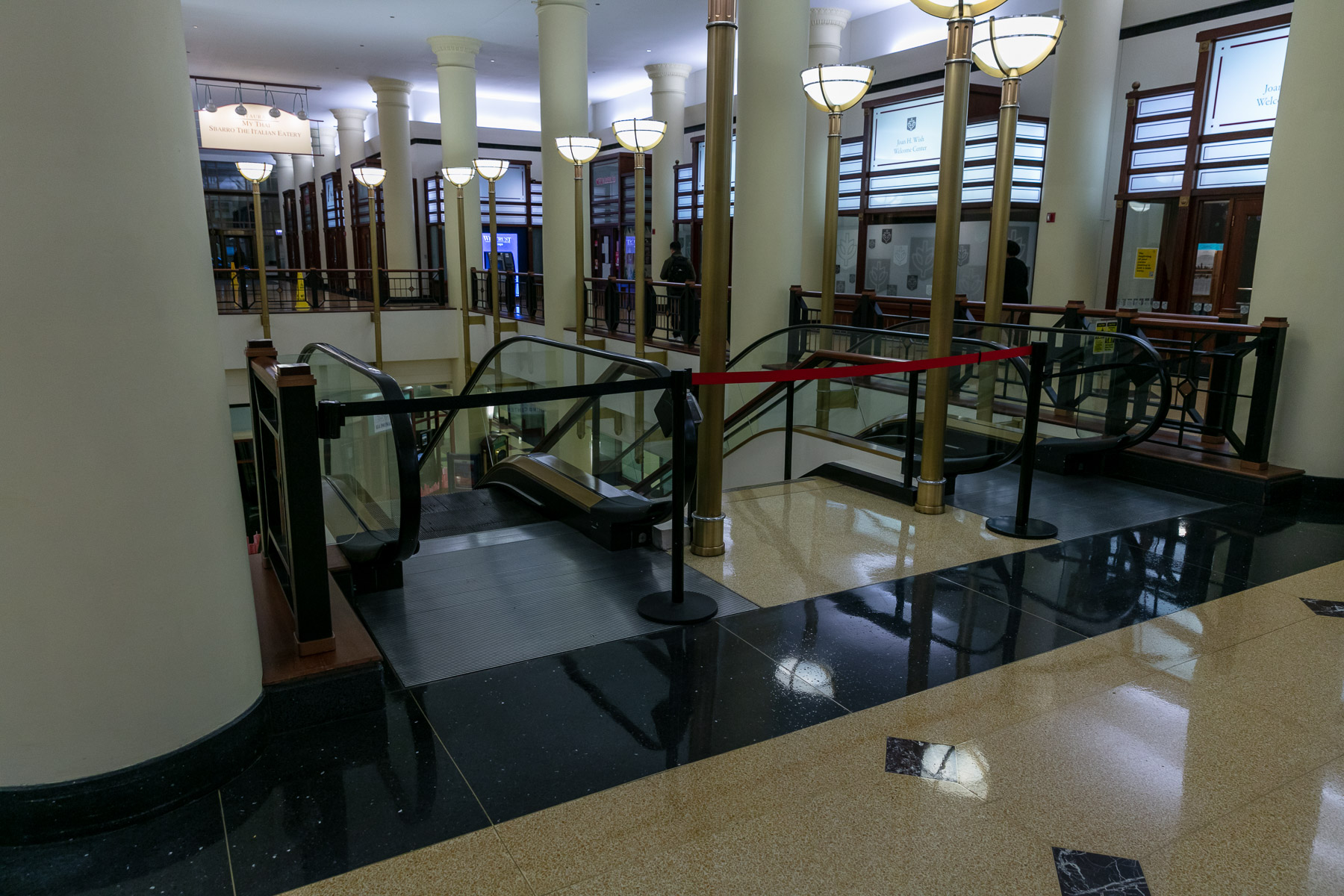 Escalators and stairs remain restricted in the DePaul Center prohibiting pedestrian traffic. (DePaul University/Randall Spriggs)