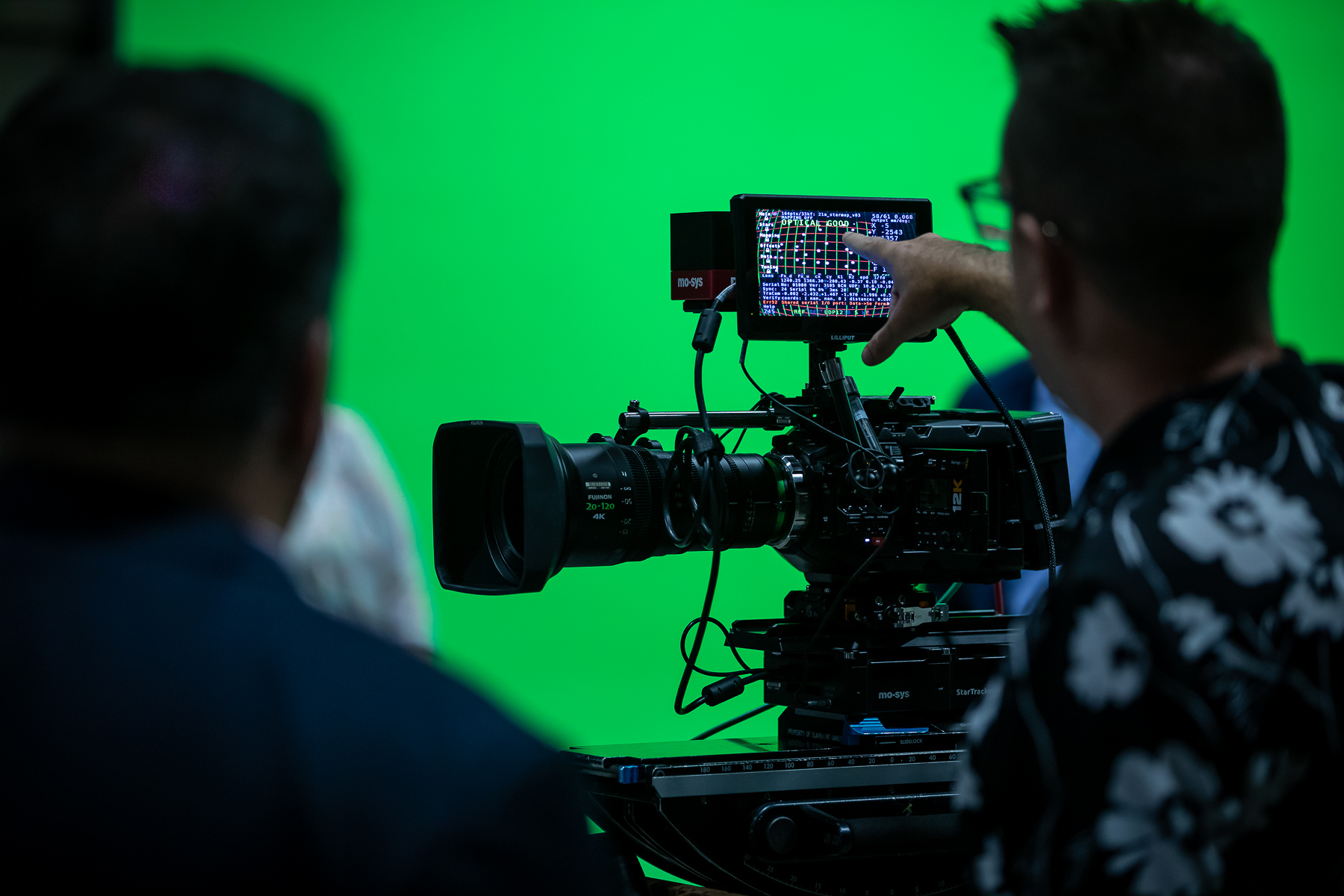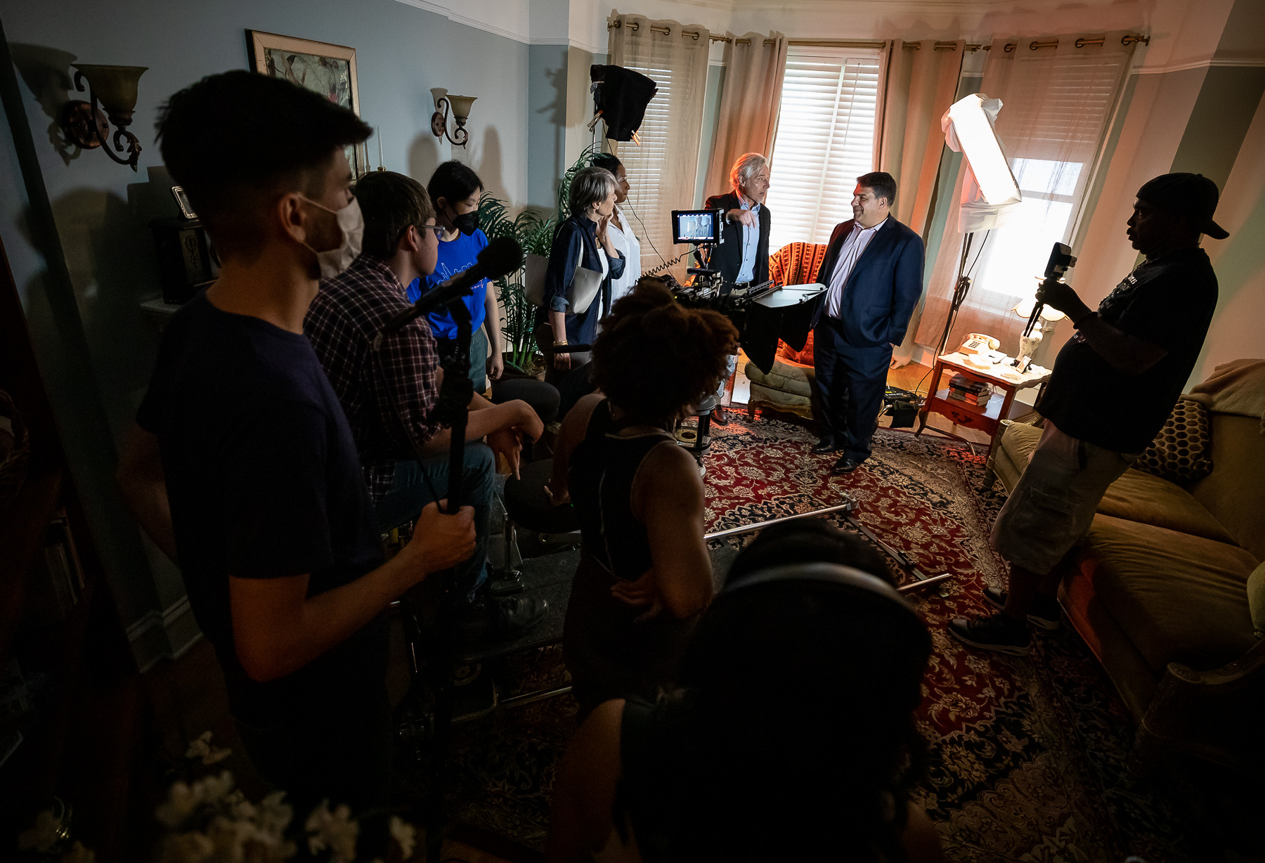 This month, Rob Manuel, president of DePaul, joined Provost Salma Ghanem and leaders from the Jarvis College of Computing and Digital Media on a visit to the university's facilities at Cinespace Studios. Opened in 2013, the 32,000-square-foot professional production facility is located within Chicago's booming center for feature film and television production. DePaul's School of Cinematic Arts students learn filmmaking crafts and techniques from highly accomplished faculty and staff on industry-standard equipment mere steps away from high-profile network productions filming on the studio's lot.