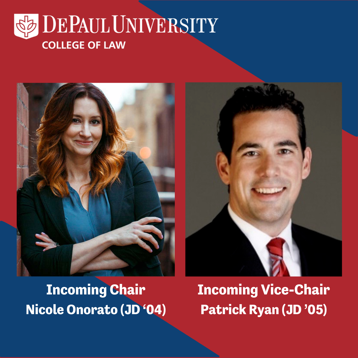 DePaul Law is excited to announce the incoming chair of the Schiller DuCanto & Fleck Family Law Center Advisory Board, Nicole Onorato (JD ‘04), and the incoming vice-chair, Patrick Ryan (JD ’05)!