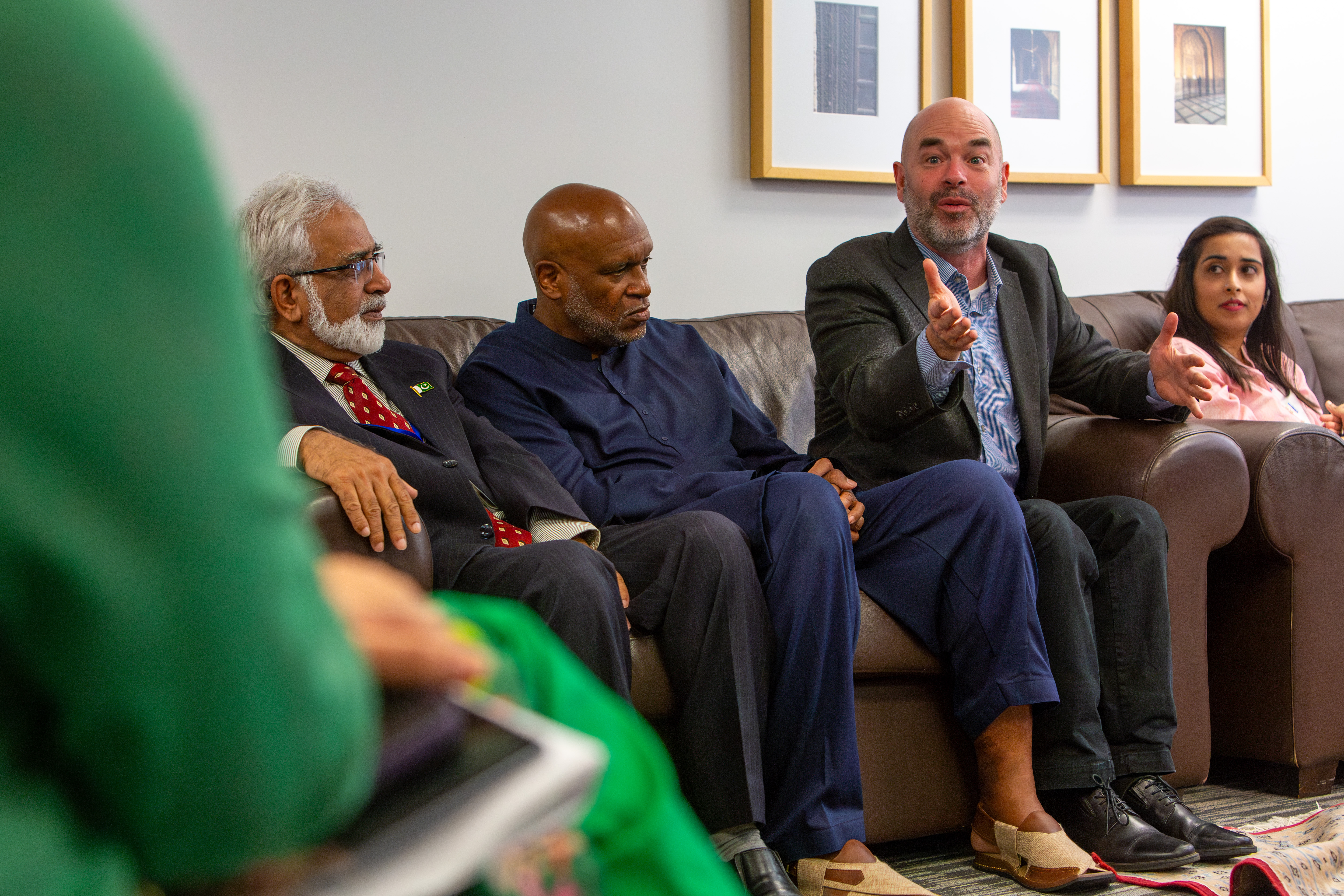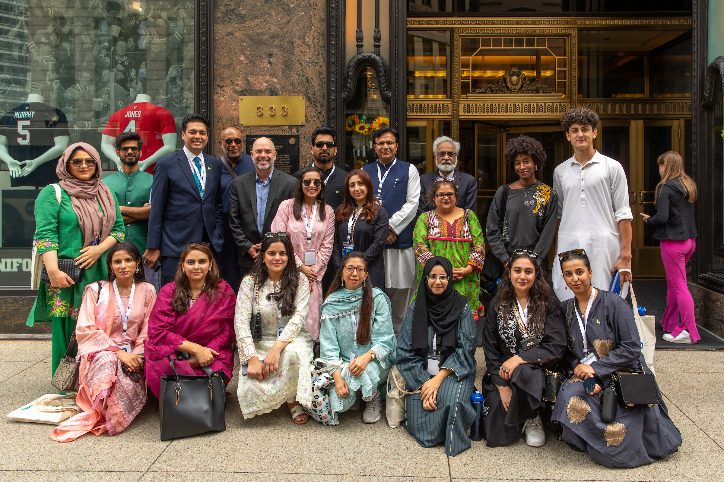 A group of Pakistani students visit the Pakistan Consulate General as part of a knowledge and cultural exchange focused on Green Urban Development. (Photo by Keeton Holder/DePaul University)