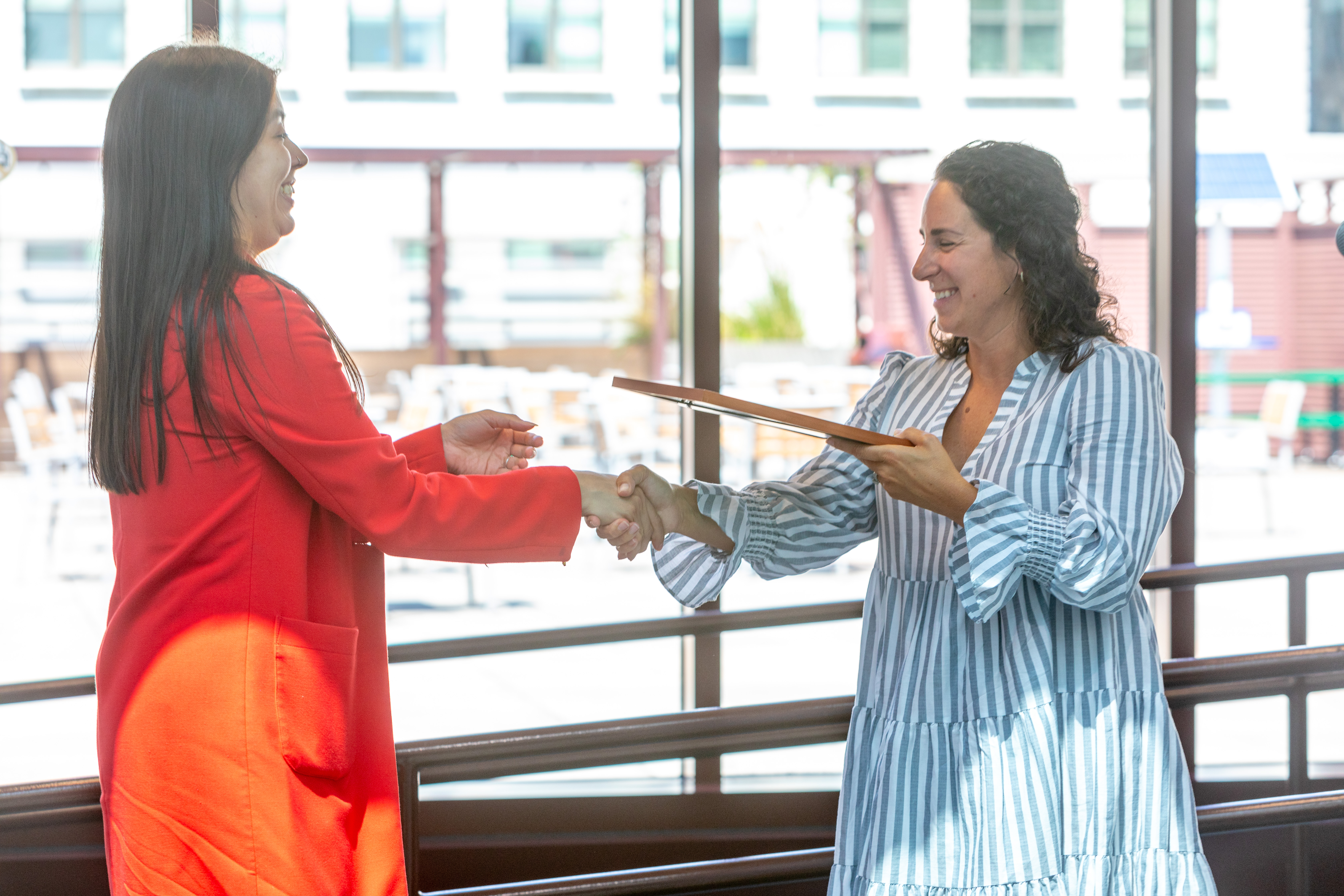 A faculty member receives her certificate at the BUILD graduation ceremony. (Photo by Keeton Holder/DePaul University)