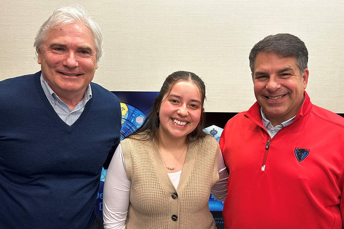 DePaul President Robert L. Manuel met with Gomez-Meza soon after she found out she was a Truman Scholar.