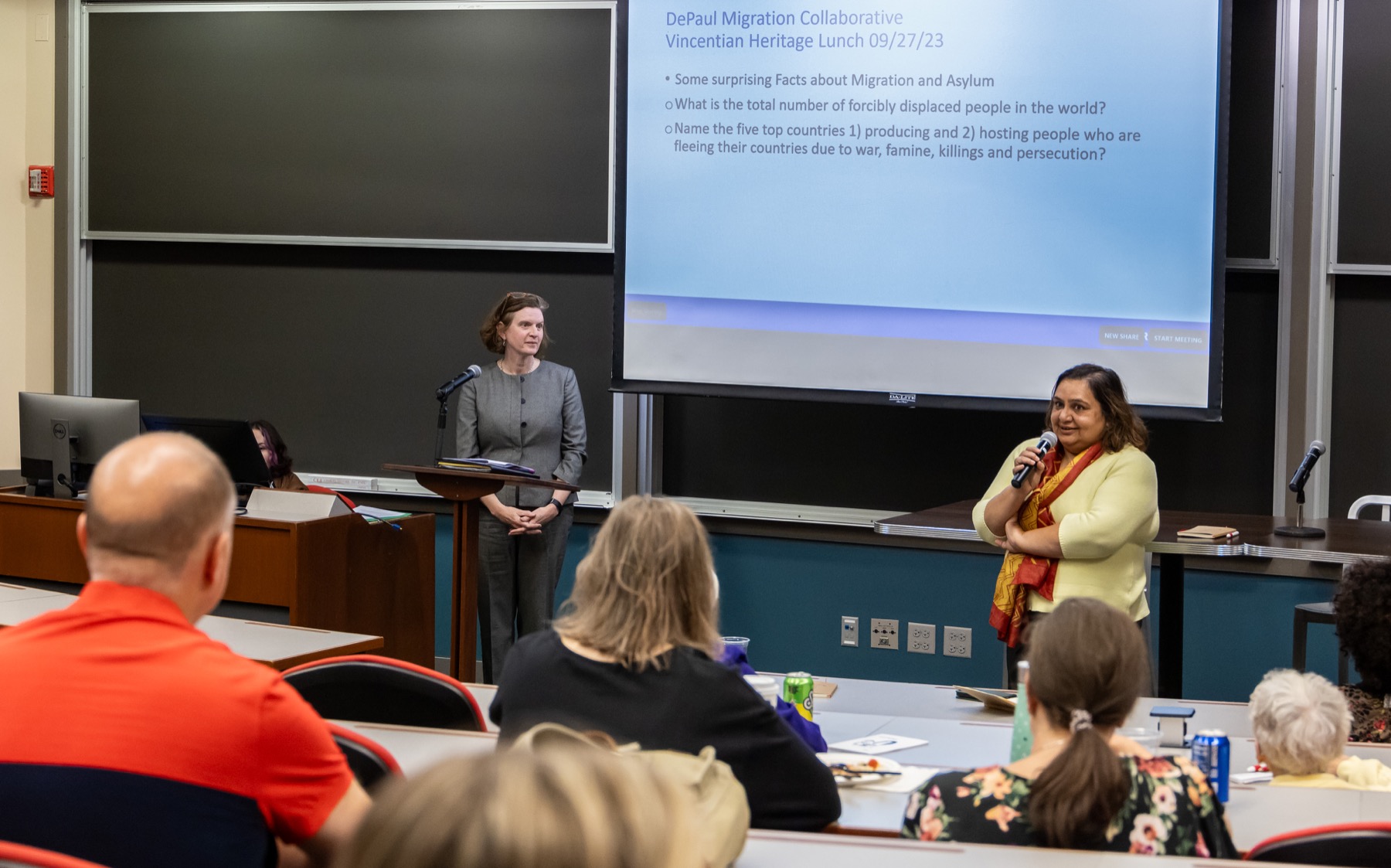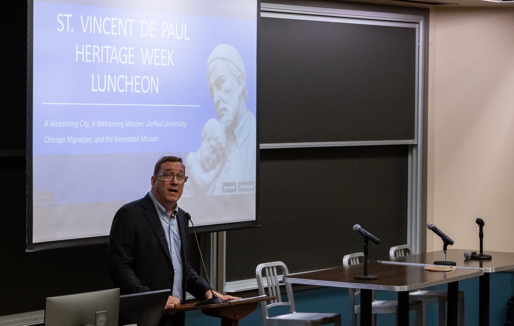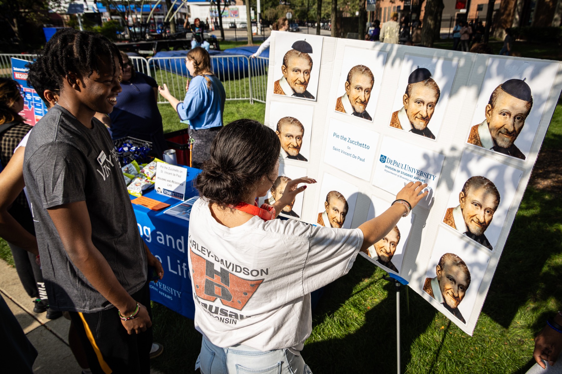 The DePaul community celebrated St. Vincent de Paul Heritage Week across the Lincoln Park and Loop Campuses September 24 – 29. Students, faculty and staff enjoyed a Loop Mini Vinny Fest, the annual St. Vincent de Paul Prayer Breakfast, and a day of games, fun and connection to the mission at the traditional Lincoln Park Vinny Fest held to honor the university's namesake. (Photos by Jeff Carrion and Kathy Hillegonds / DePaul University)