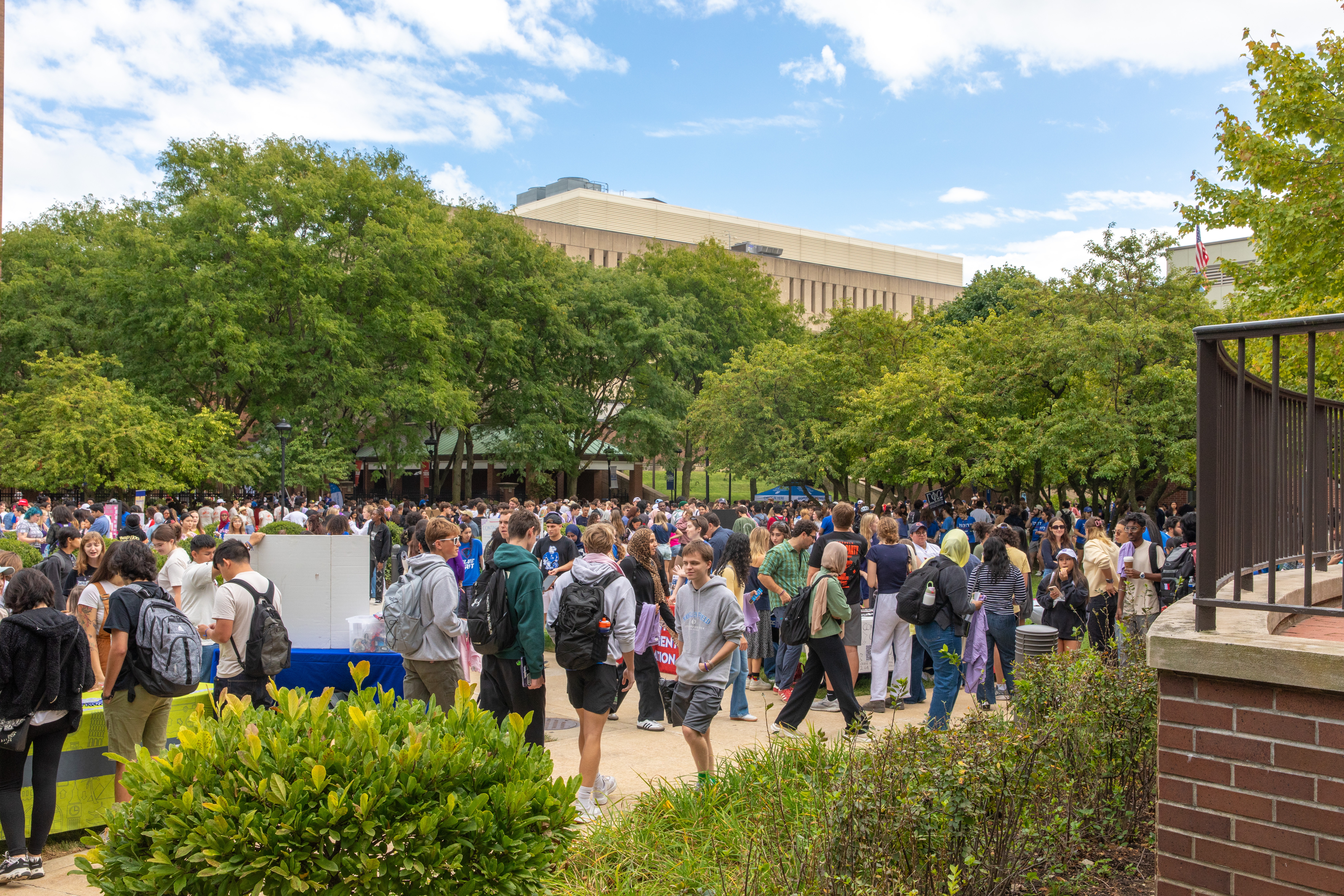 Students and event organizers interact at the Lincoln Park Involvement Fair. (Photo by Keeton Holder/DePaul University)