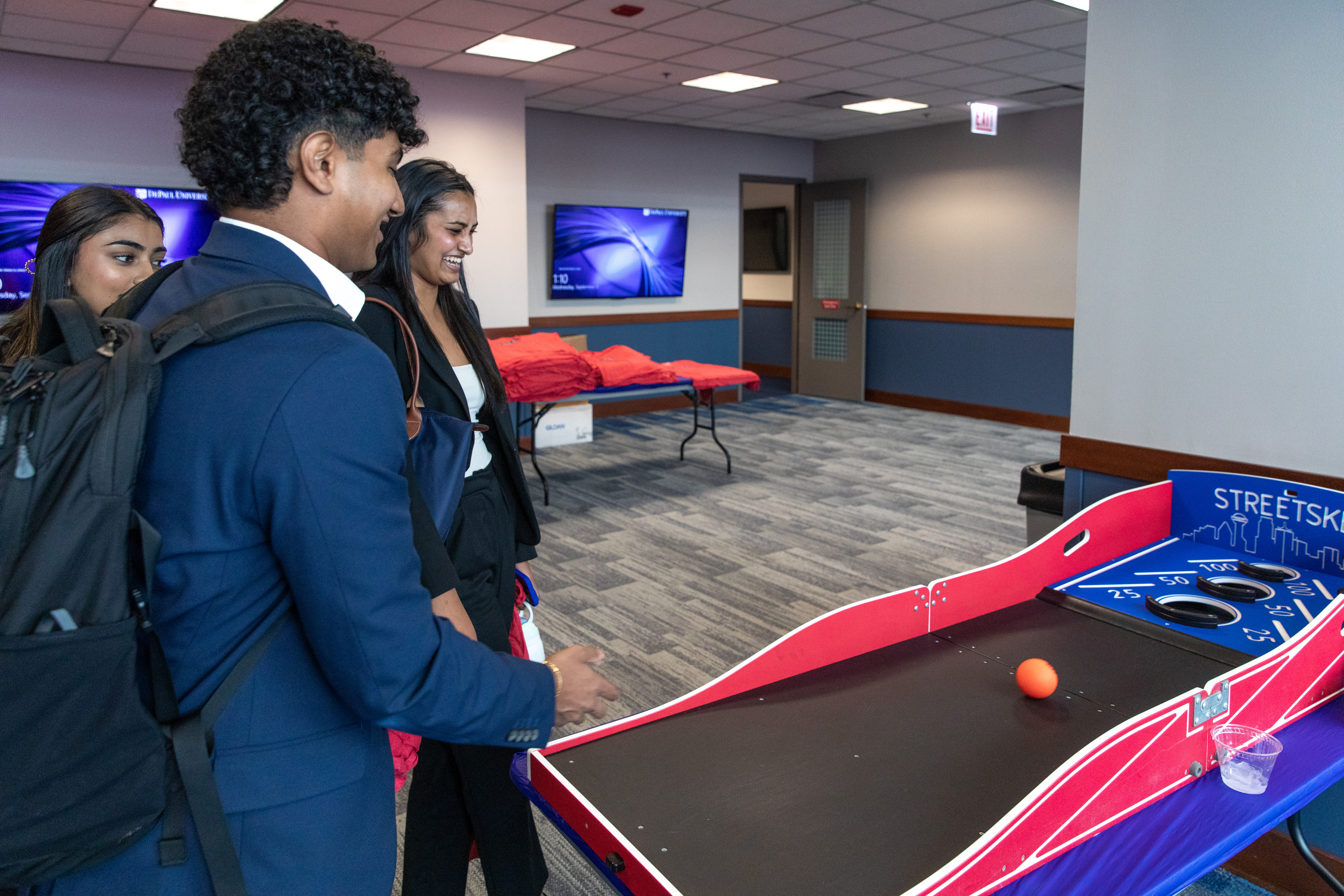 A group of Blue Demons play carnival games at the Loop Block Party. (Photo by Keeton Holder/DePaul University)