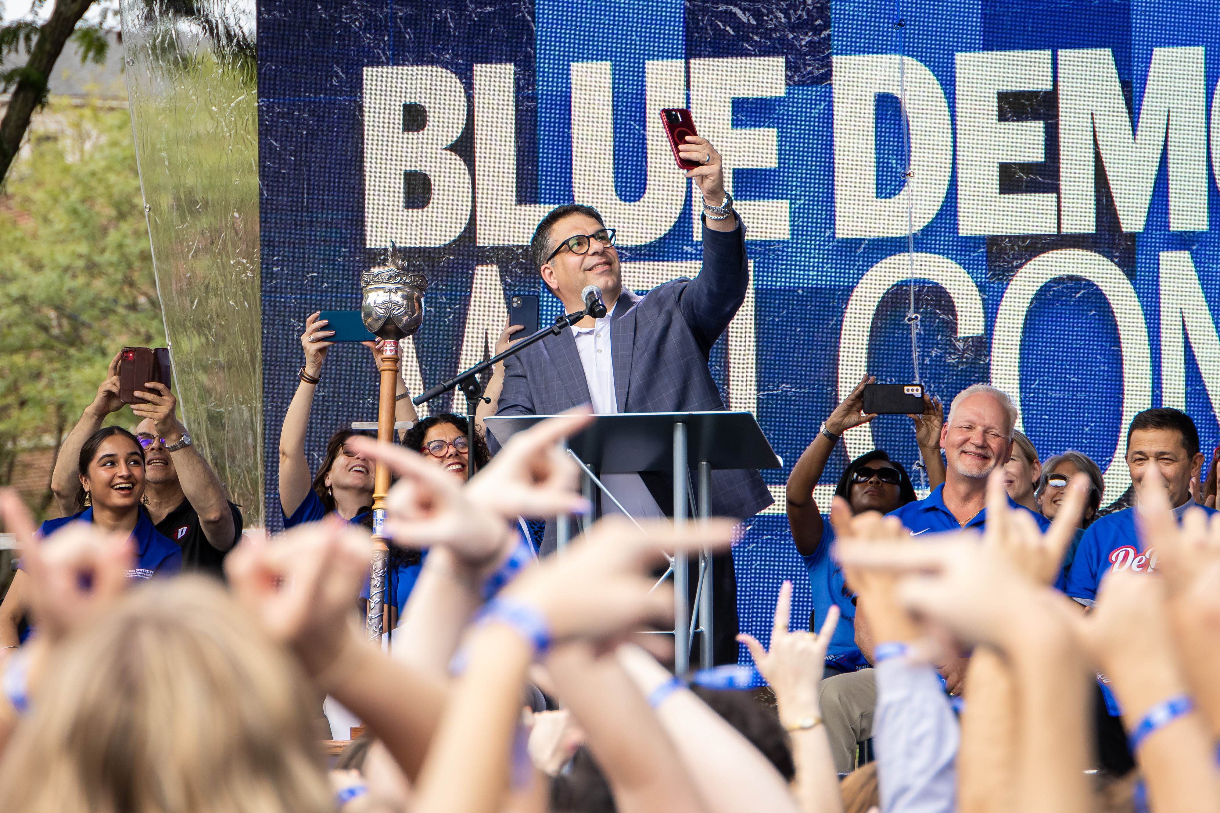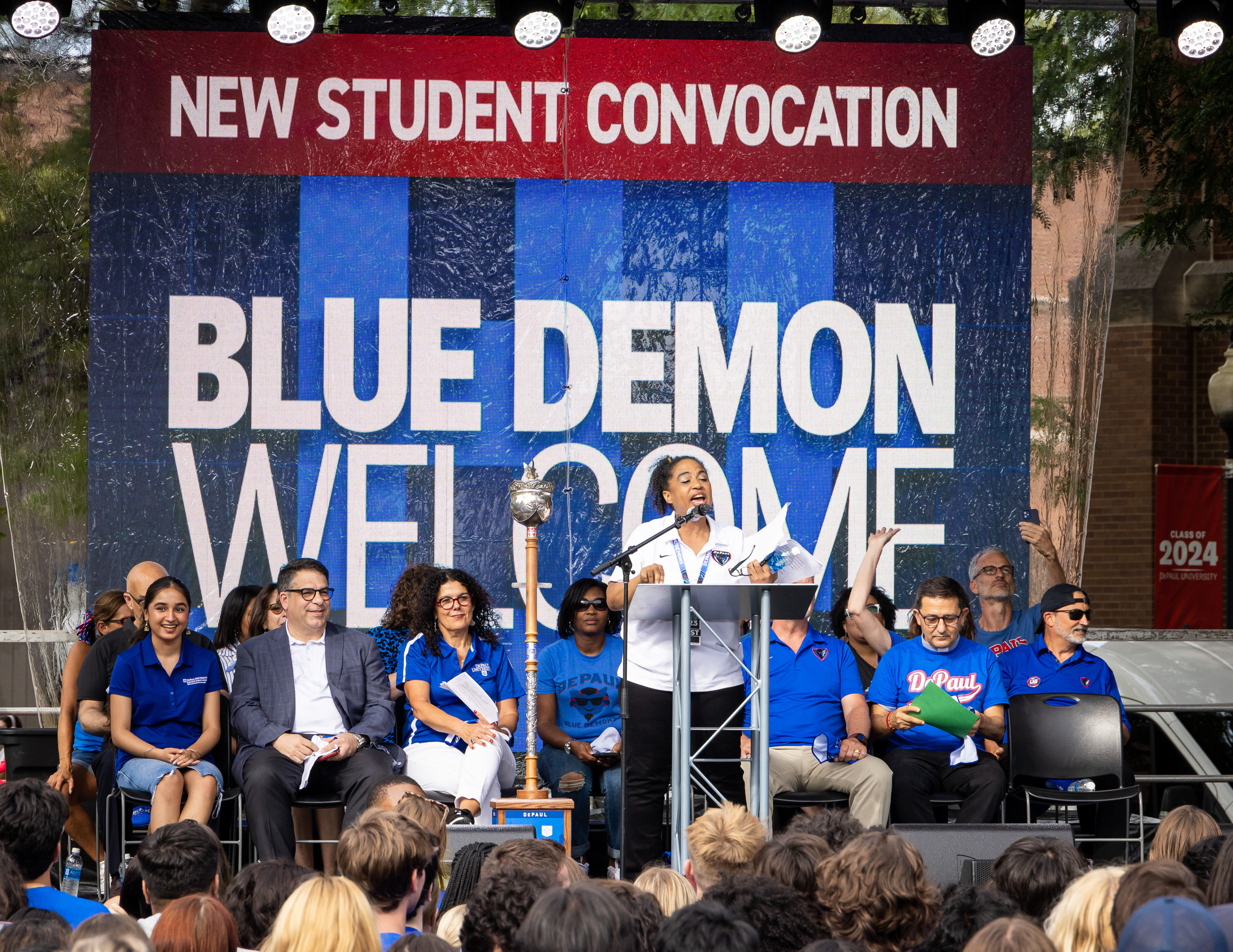 Blue Demon Welcome, DePaul's annual New Student Convocation that celebrates the beginning of the academic journey for all new undergrads, including freshman and transfer students was held on Tuesday, September 5, on the Lincoln Park Campus. Returning students, faculty, and staff joined in the celebration to welcome in the newest Blue Demons.